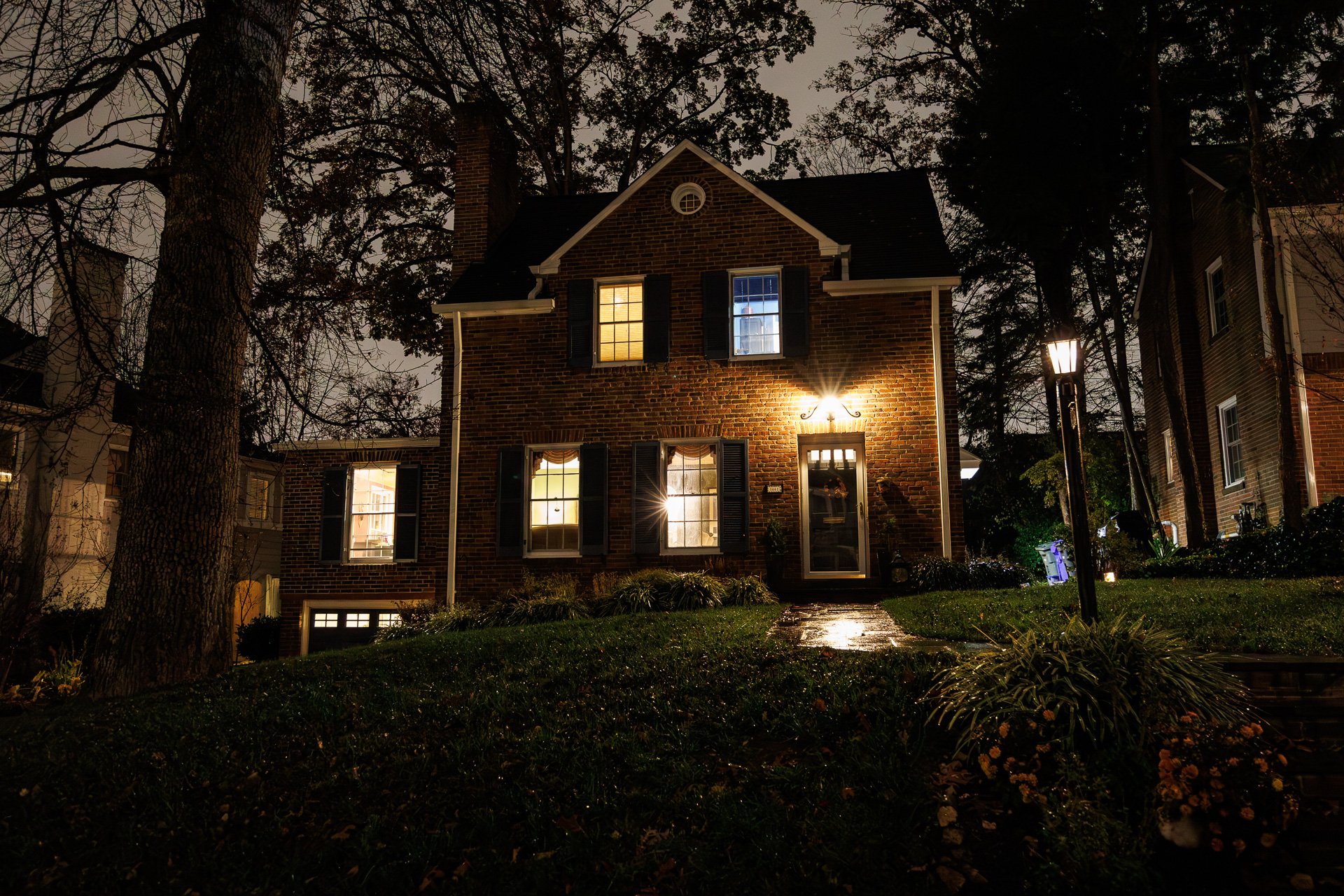 Encore une belle journée de découverte sur la riche histoire politique et spatiale des États-Unis ! Nous reprenons ensuite le chemin du retour. Après avoir pris le métro et le bus, il nous reste quelques centaines de mètres à faire pour rejoindre le camion. La rue étant relativement sombre les maisons éclairées donnent de jolies notes de lumières 🤩 !