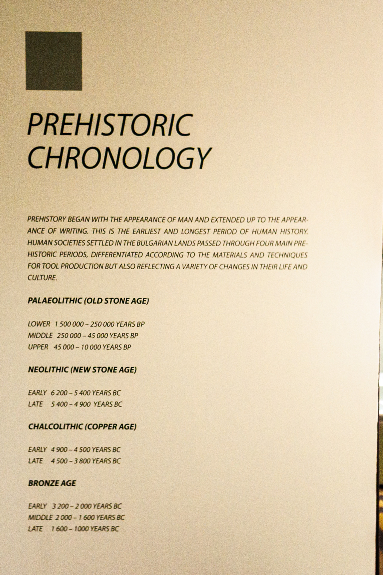 La salle du rez-de-chaussée est superbe. Elle comprend les âges de pierre (paléolithique et néolithique), cuivre et bronze soit de 1 500 000 à 1000 avant JC. Elle retrace aussi la présence humaine en Bulgarie.