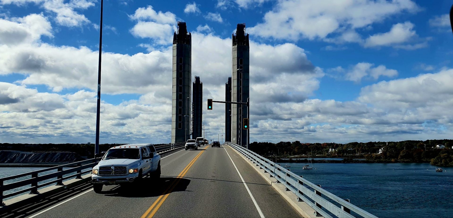 Ensuite, nous irons faire les vidanges nécessaires avant notre séjour à Boston. Sur la route, nous empruntons un beau pont levant… A droite, la rivière Merrimack et à gauche, l’Océan Atlantique Nord.