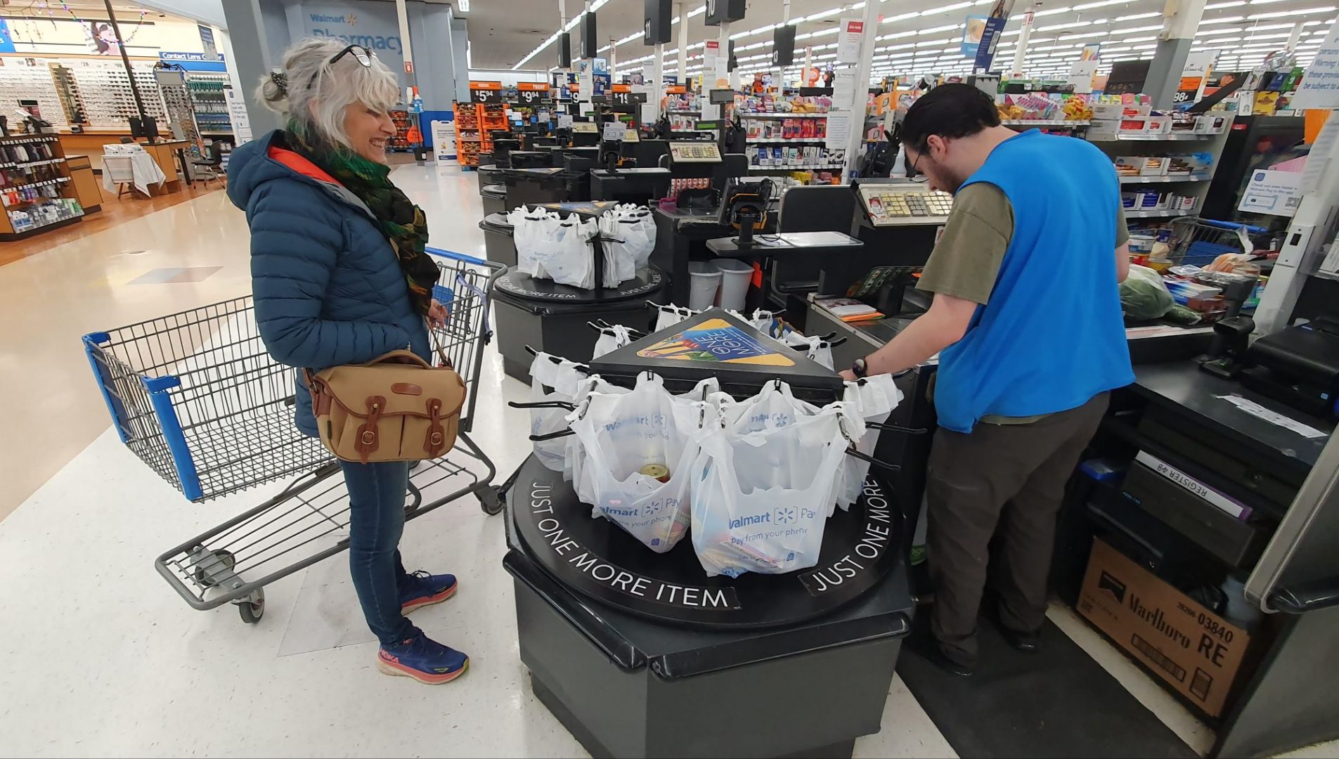 187197 km : ce matin, nous devons allé réceptionner notre premier colis en poste restante (General Delivery) aux USA. Tout s’est bien passé, colis récupéré en deux minutes, et nous voilà avec quelques filtres d’avance pour potabiliser l’eau de notre réservoir 👍 Puis petit tour chez Walmart pour quelques courses. Particularité : le caissier range toutes vos courses dans des sacs plastiques que vous n’avez plus qu’à mettre dans le chariot. Un astucieux plateau tournant lui permet de les ranger par famille. Génial 👍