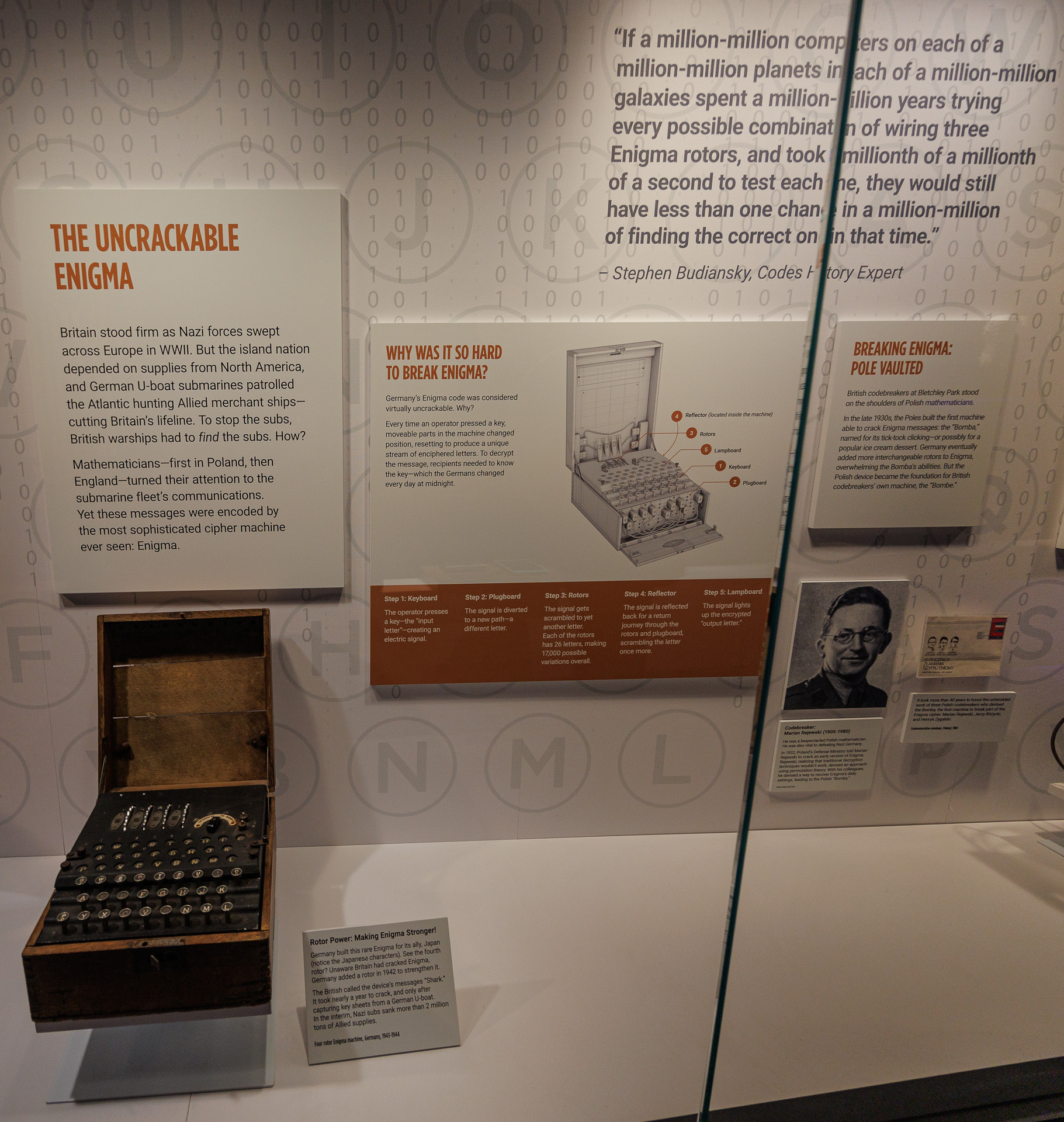 Le décryptage top-secret du code allemand Enigma par Alan Turing et les décrypteurs qui travaillaient avec lui à Bletchley Park (Grande-Bretagne) fut l’un des plus grands coups d’éclat britanniques de la Seconde Guerre mondiale. Il a permis aux navires qui livraient des fournitures vitales au Royaume-Uni pendant les jours les plus sombres de la guerre d’échapper aux meutes de sous-marins allemands qui tentaient de les traquer, et a permis à la Grande-Bretagne de reconstruire ses forces et de rééquiper ses armées !!