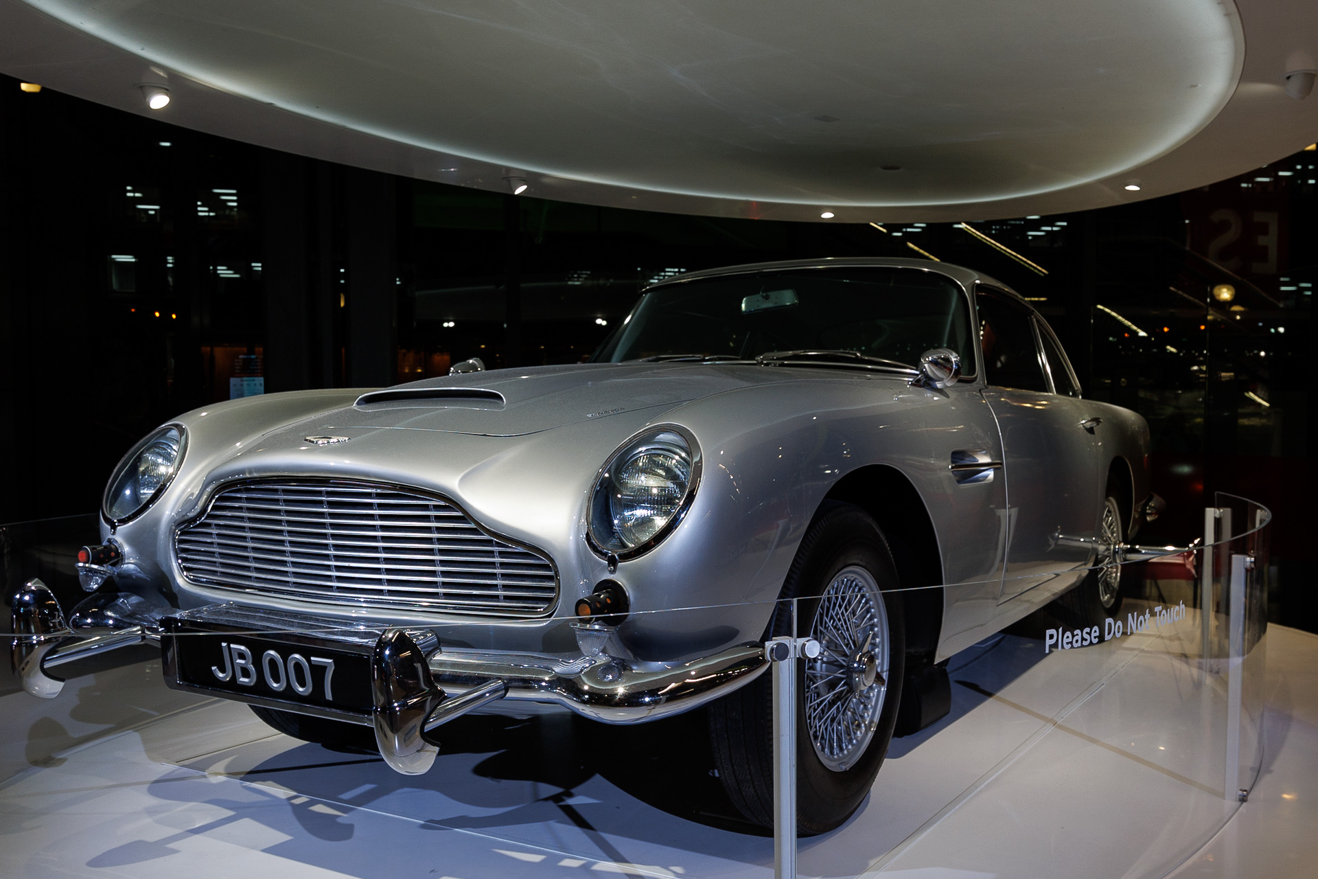 Avant de quitter le musée nous passons devant la voiture originale et préférée de James Bond (Sean Connery)… la belle Aston Martin DB-5 avec ses veilleuses d’où sortent des mitraillettes, son pare-choc et ses jantes extensibles !