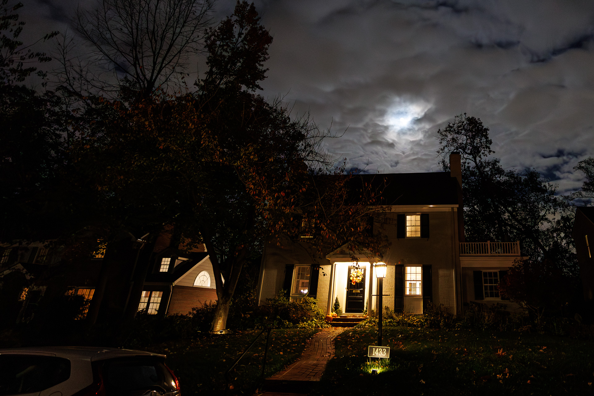 Après le métro et le bus, nous revoilà dans notre rue avec ses belles maisons au clair de lune. Nous allons passer notre dernière nuit à Washington DC.