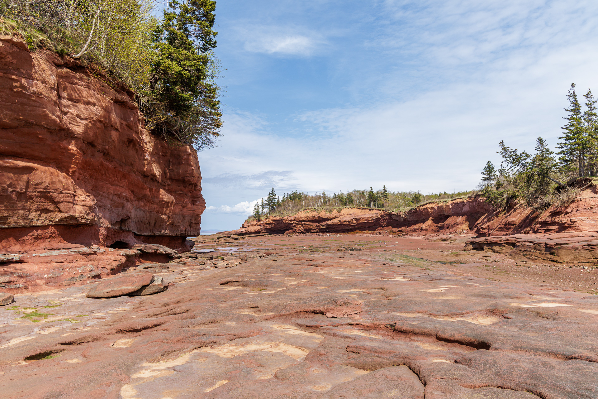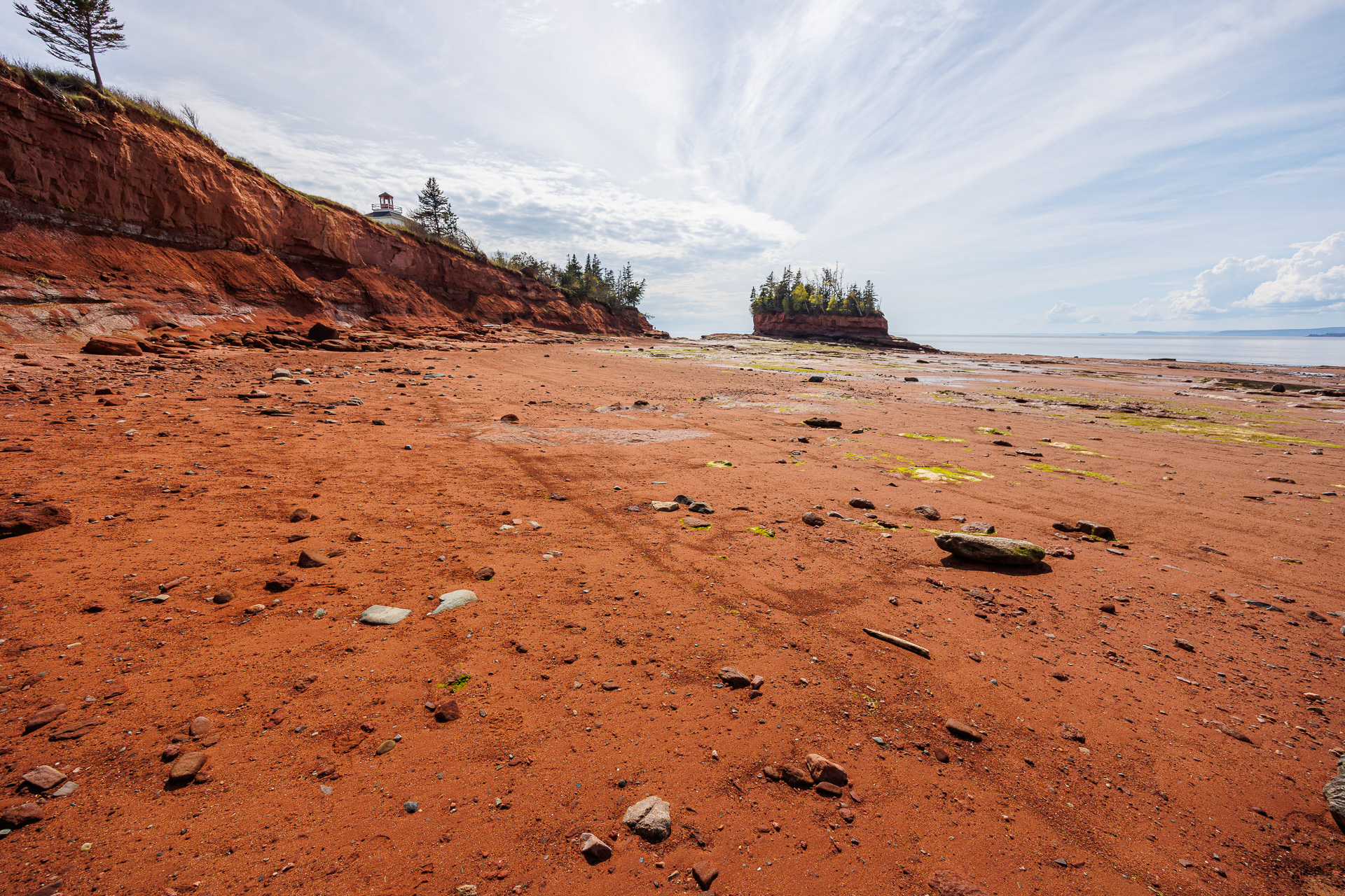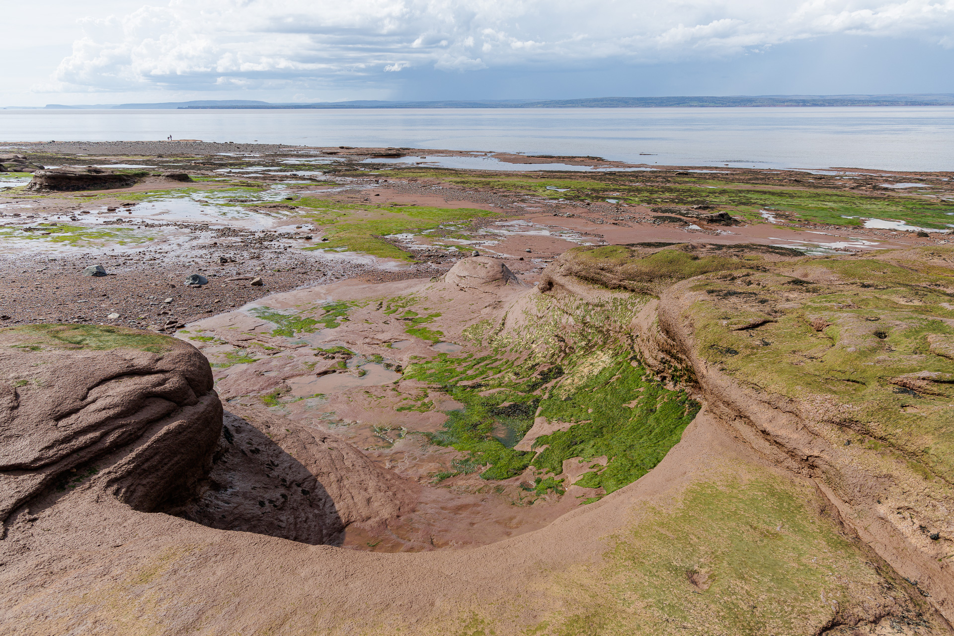 Ici où peut vivre l’expérience des marées les plus extrêmes de la terre. L’amplitude de la marée de la basse mer à la haute mer (= le marnage) atteint 16,3 mètres (53,5 pieds) à son maximum en période de vives eaux, .