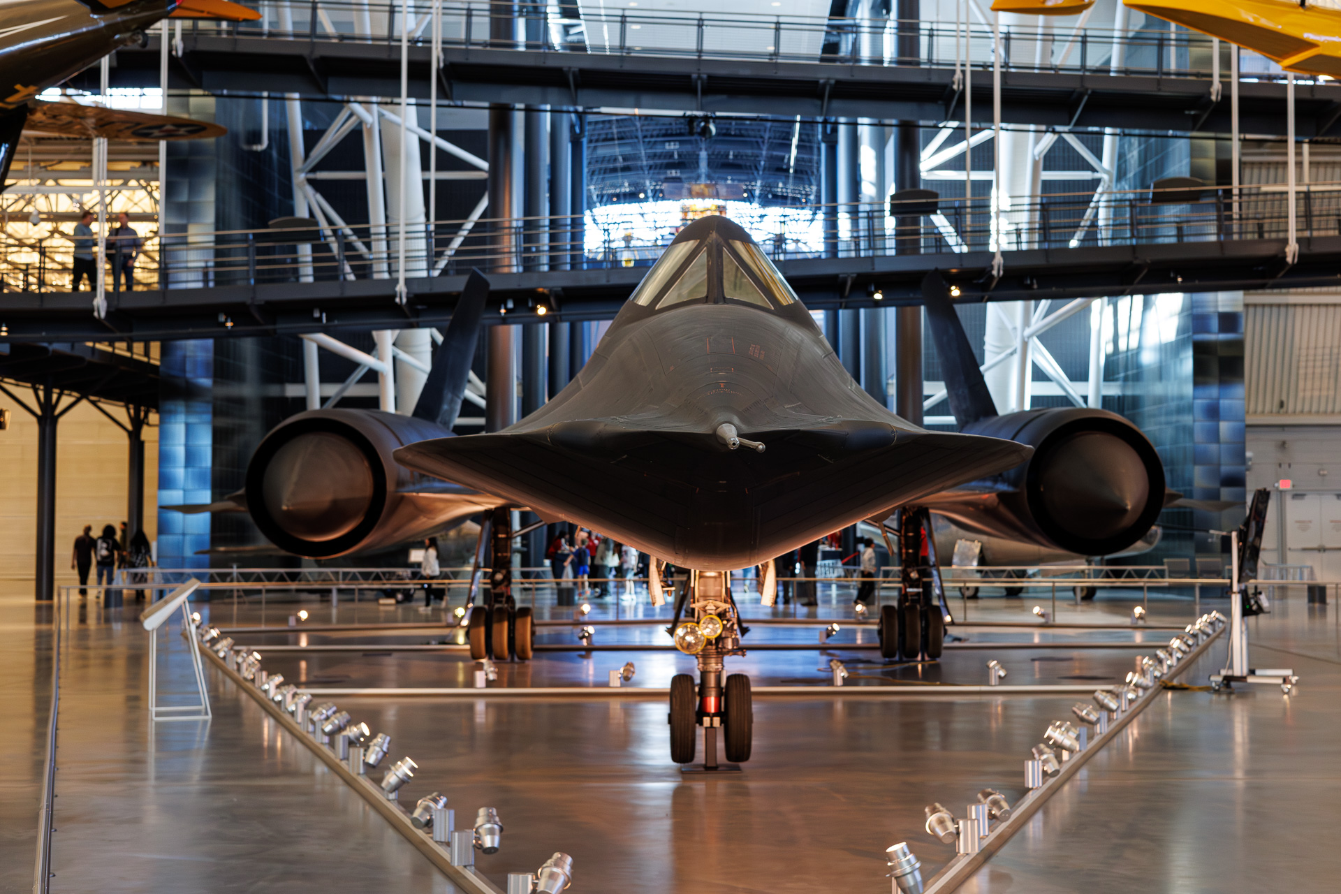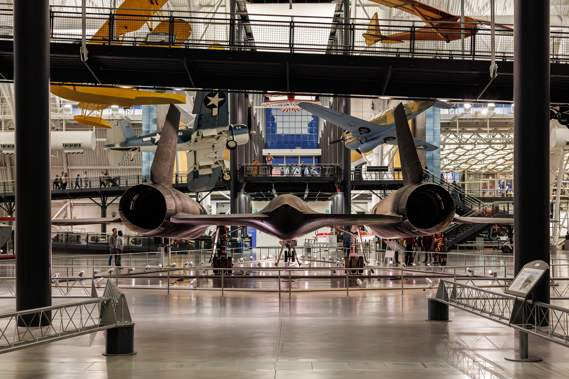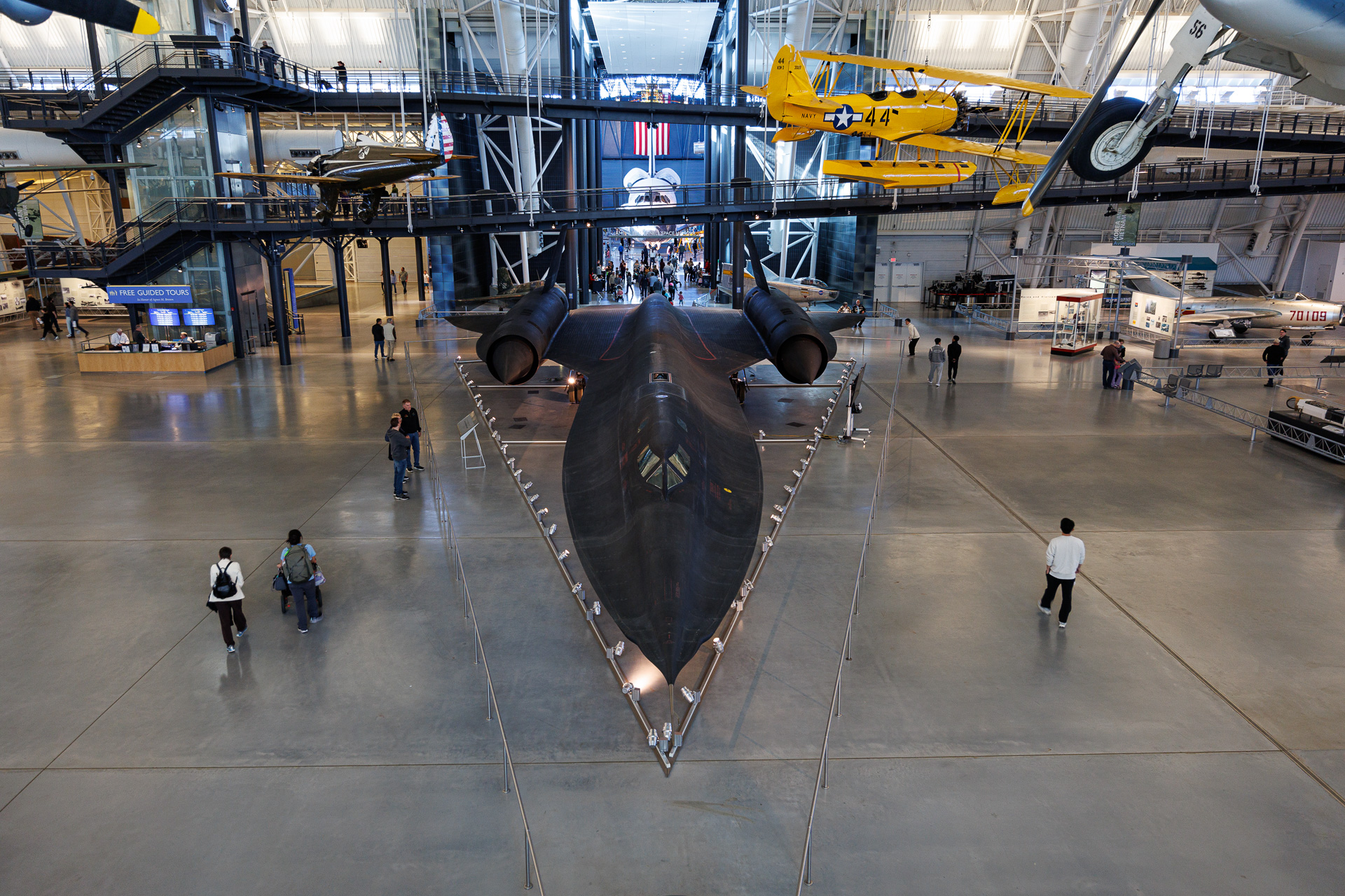 LOCKHEED SR-71 : Une des pièces maîtresses du musée est le Lockheed SR-71 Blackbird. Aucun avion de reconnaissance de l’histoire n’a opéré dans un espace aérien plus hostile et avec une impunité aussi totale que le SR-71, l’avion à réaction le plus rapide du monde. Les performances du Blackbird l’ont placé au sommet des développements technologiques de l’aviation pendant la guerre froide.