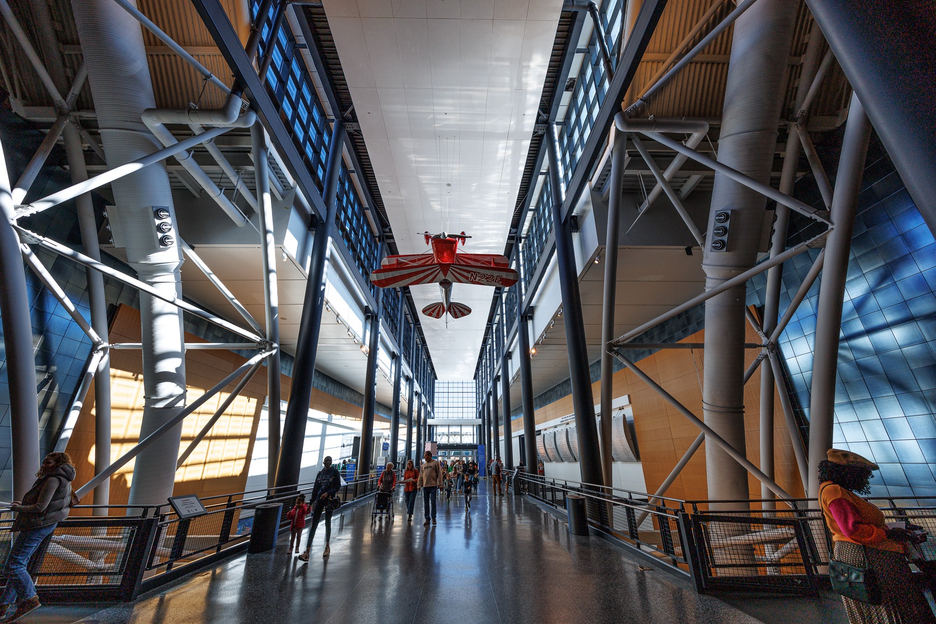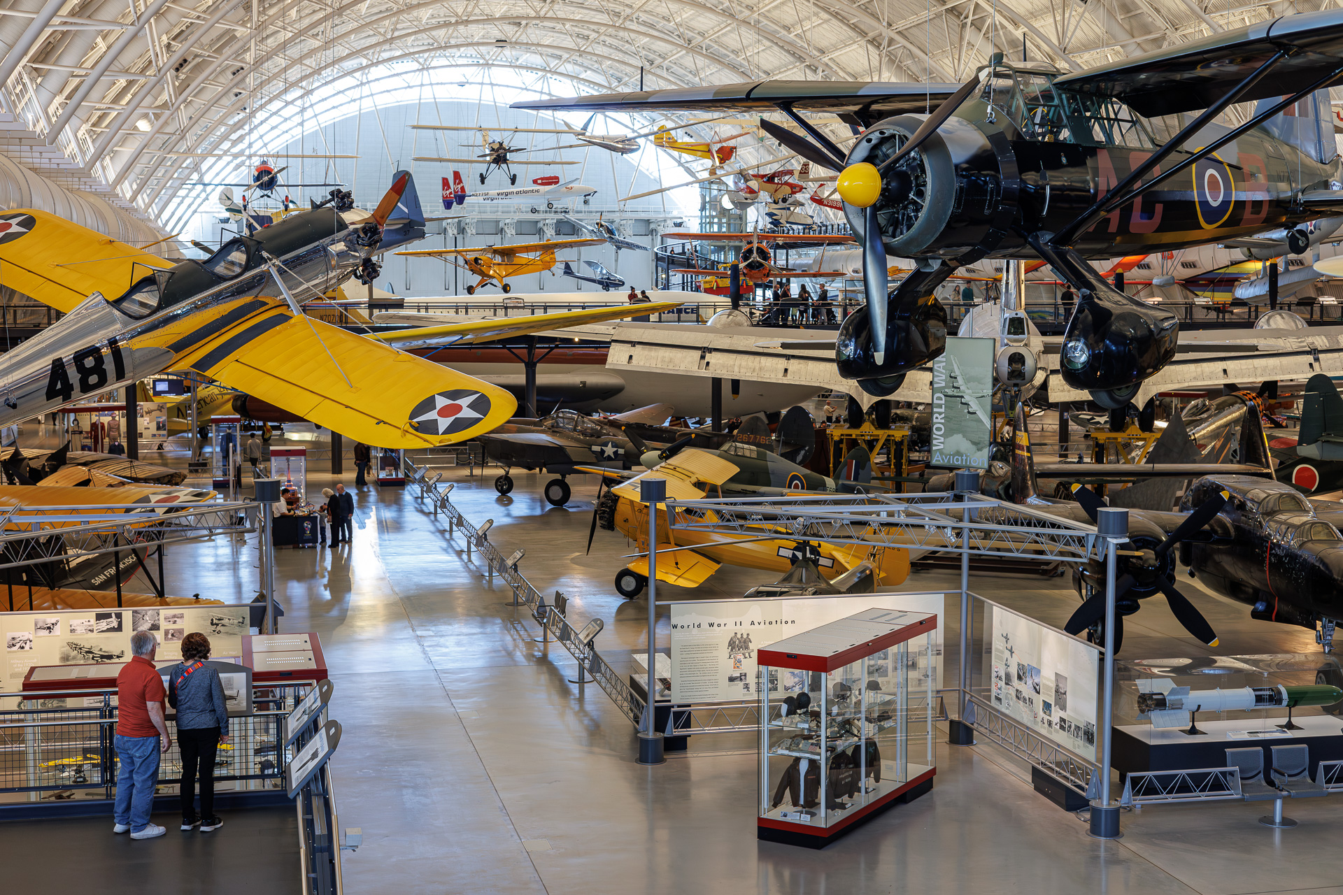 Nous voilà donc partis pour environ 50 kilomètres vers l’ouest pour rejoindre l’aéroport international de Washington-Dulles qui est la porte d’entrée internationale de la région. Sur le site se trouvent les immenses bâtiments du musée. Et, comme d’habitude à Washington, le musée est gratuit, seul le parking (15€ la journée) et les animations optionnelles sont à payer.