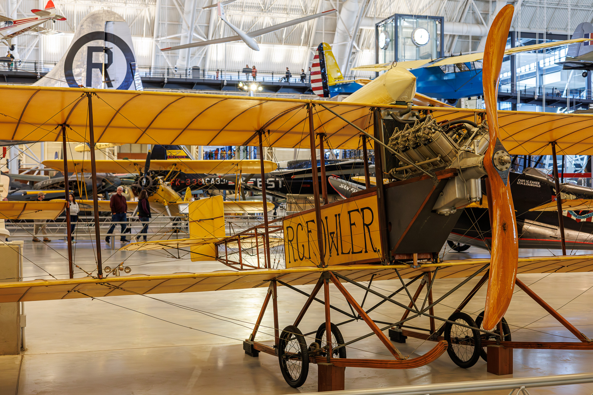 FOWLER-GAGE : Ce biplan Gage de 1912 est appelé Fowler-Gage en hommage à son propriétaire et pilote, Robert G. Fowler. À partir d’octobre 1912, Fowler a effectué de nombreux vols d’exposition et de transport de passagers en Californie. Il a réalisé son vol le plus célèbre avec cet avion en 1913, en volant d’un océan à l’autre au-dessus du Panama. Il a effectué le vol de 83 km en 1h45min.