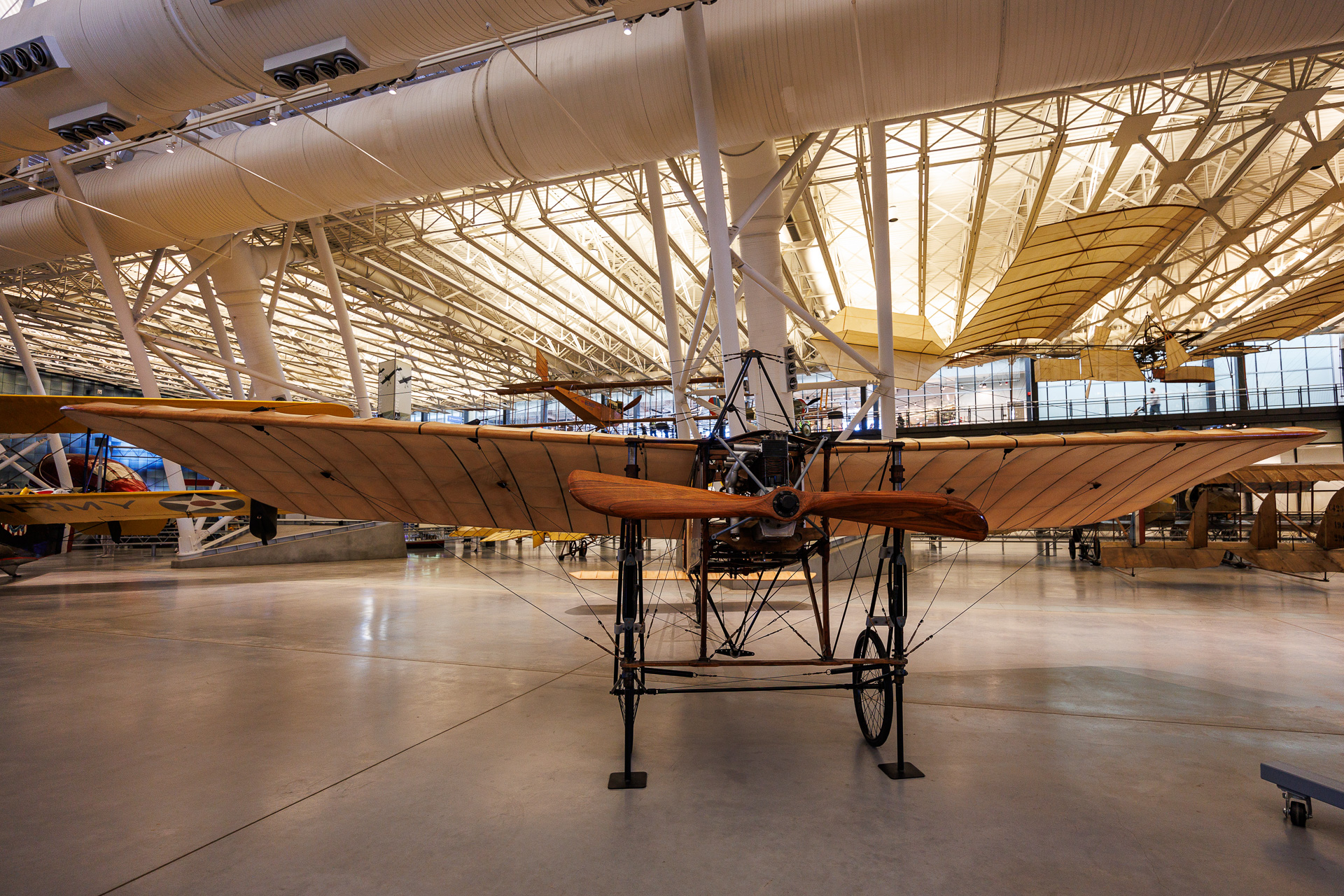 VANDERSARL-BLERIIT : Beaucoup plus simple, et plus ancien, un Vandersarl-Blériot. Mais d’où vient ce nom ? On sait peu de choses sur Jules « JJ » VanDersarl et son jeune frère Frank, si ce n’est qu’ils vivaient à la périphérie de Denver, au Colorado ; leur mère travaillait comme femme de ménage et ils avaient à peine terminé l’école primaire. Mais les deux frères avaient des talents mécaniques innés qui leur ont permis de maîtriser l’usinage, la menuiserie et d’autres compétences. Il n’est donc pas surprenant que ces jeunes hommes se soient passionnés pour l’aviation. JJ a expérimenté des planeurs à l’âge de 12 ans et, plus tard, quelques mois après le vol de Blériot au dessus de la Manche en 1909, lui et Frank sont devenus plus ambitieux. Après avoir obtenu toutes les publications et photographies possibles, ils ont utilisé ces références collectées pour construire leur propre Blériot XI en 1911… puis ont appris à le piloter.