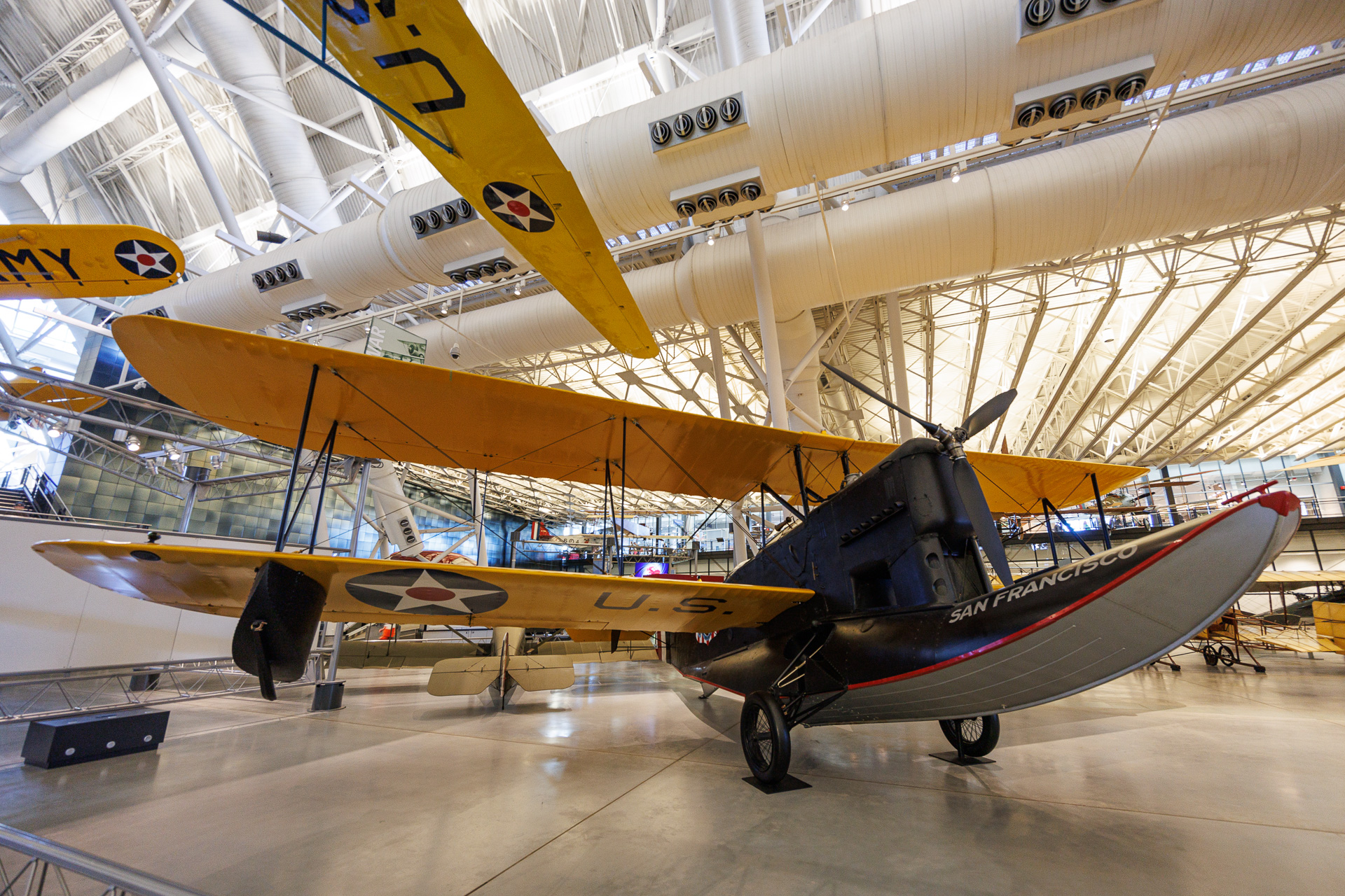 SIKORSKY JRS-1 : Cet hydravion amphibie est le seul avion du musée qui se trouvait à Pearl Harbor, à Hawaï, le 7 décembre 1941. Dix JRS-1 se trouvaient sur la base navale américaine lorsque les Japonais ont attaqué pendant la Seconde Guerre mondiale. La marine a immédiatement envoyé ces engins utilitaires non armés à la recherche de la flotte ennemie. Le JRS-1 (utilisé de 1937 à 1944) est la version militaire du Sikorsky S-43 « Baby Clipper ».