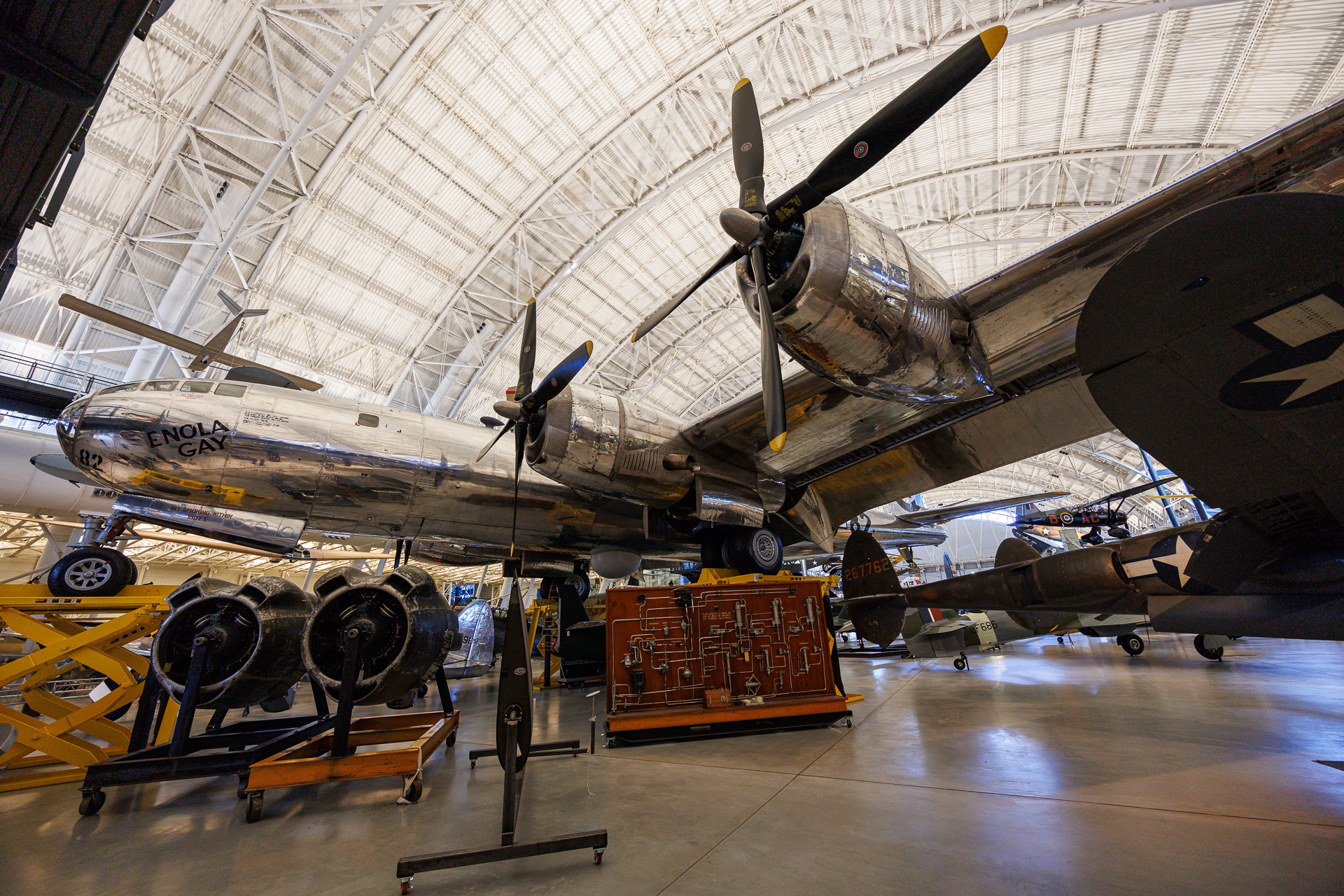 BOEING B-29 Superfortress :  Le B-29 Superfortress de Boeing était le bombardier à hélice le plus sophistiqué de la Seconde Guerre mondiale et le premier à loger son équipage dans des compartiments pressurisés. Bien que conçu pour combattre sur le théâtre européen, le B-29 a trouvé sa place à l’autre bout du monde. Dans le Pacifique, les B-29 ont largué une grande variété d’armes aériennes : bombes conventionnelles, bombes incendiaires, mines et deux armes nucléaires.