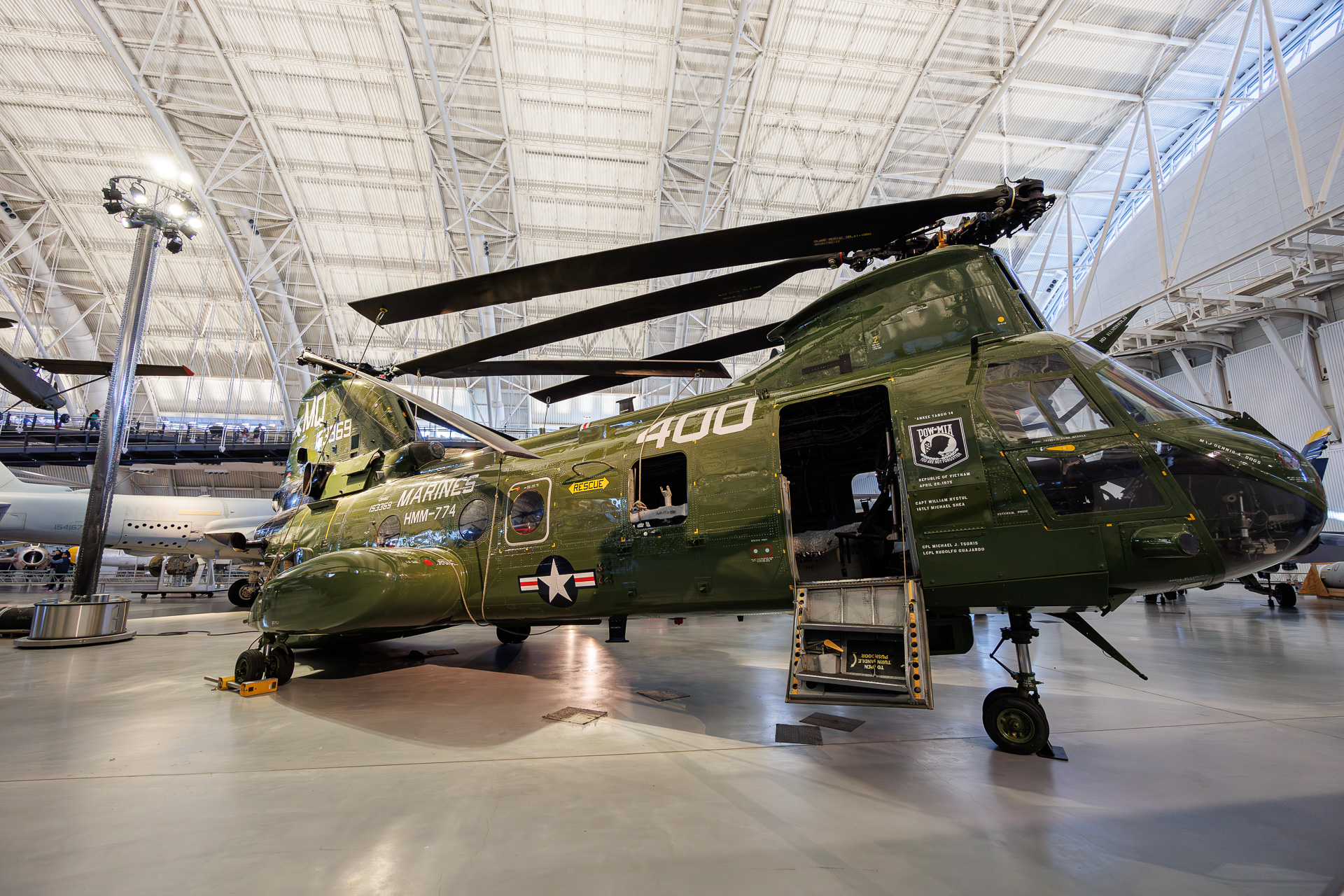 L’hélicoptère arbore une livrée spéciale, utilisée lors de sa dernière année de service, qui évoque son service intensif pendant la guerre du Vietnam, y compris une mission qui lui a valu l’attribution d’une Navy Cross. Ses autres déploiements de combat comprenaient des missions en Afghanistan en 2004 et en Irak de 2007 à 2009, qui ont coïncidé avec certaines des périodes de combat les plus intenses dans ces théâtres d’opérations.