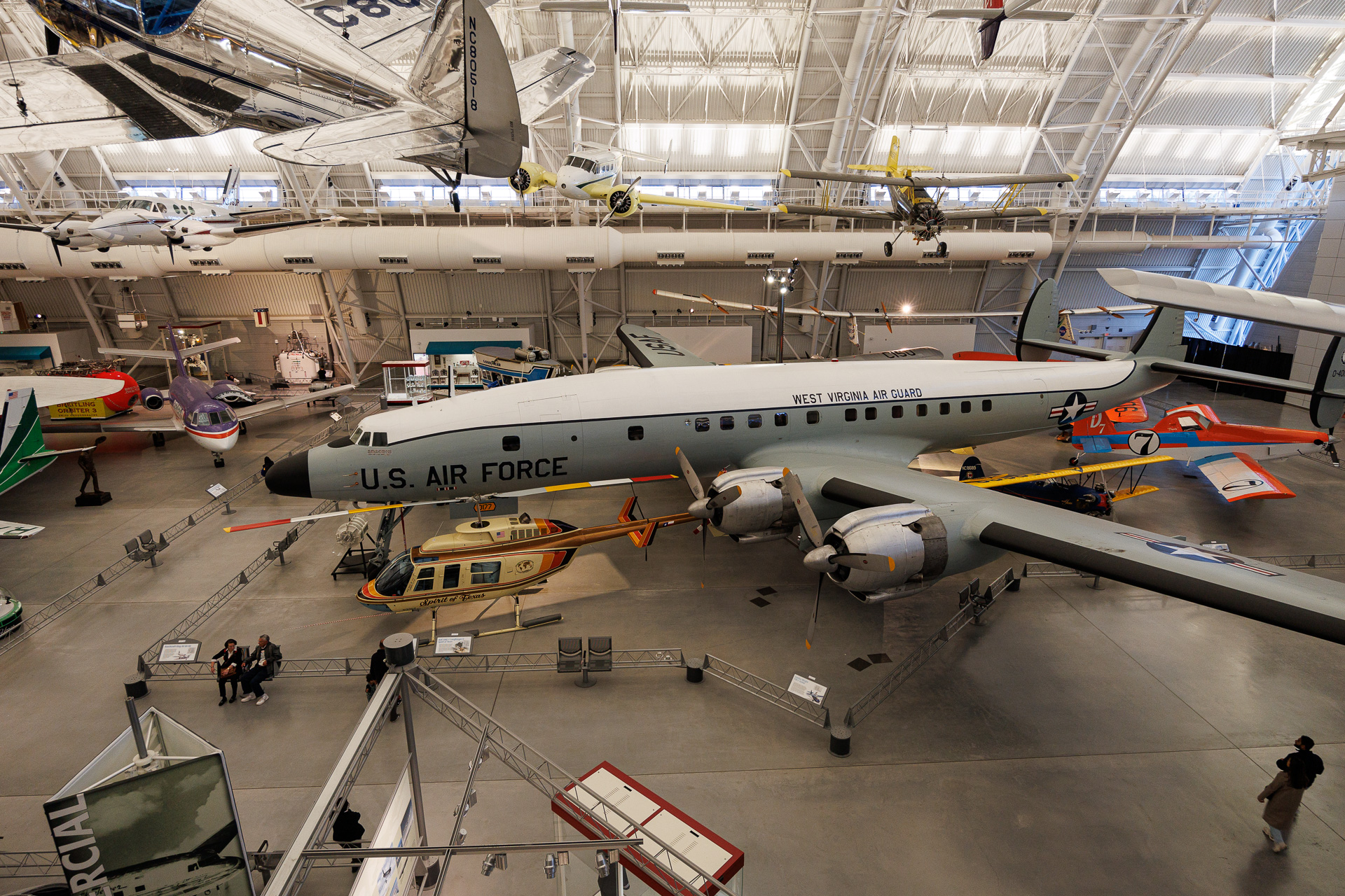LOCKHEED SUPER CONSTELLATION : En juin 1938, Lockheed commença à concevoir un avion de ligne pour satisfaire aux exigences de Transcontinental Western & Air (plus tard Trans-World Airlines = TWA), qui souhaitait un avion de ligne transcontinental sans escale avec une autonomie de 5600 kilomètres et une capacité de charge utile de 2700 kilogrammes. La construction d’un prototype débuta en 1940. Les États-Unis furent bientôt impliqués dans la Seconde Guerre mondiale et toute la production de transport fut orientée vers les besoins militaires. Par conséquent, le prototype vola pour la première fois le 9 janvier 1943 en tant qu’avion militaire. Des commandes hydrauliques furent utilisées, des hélices entièrement à mise en drapeau et à inversion de marche furent également installées. D’abord connu sous son appellation civile de modèle 049, il devint rapidement plus connu en temps de guerre sous sa désignation militaire de C-69 Constellation. Des améliorations furent régulièrement apportées, à commencer par le L-649, qui fut le premier Constellation construit en tant que type commercial et le L-749 qui était la version à long rayon d’action du 649.