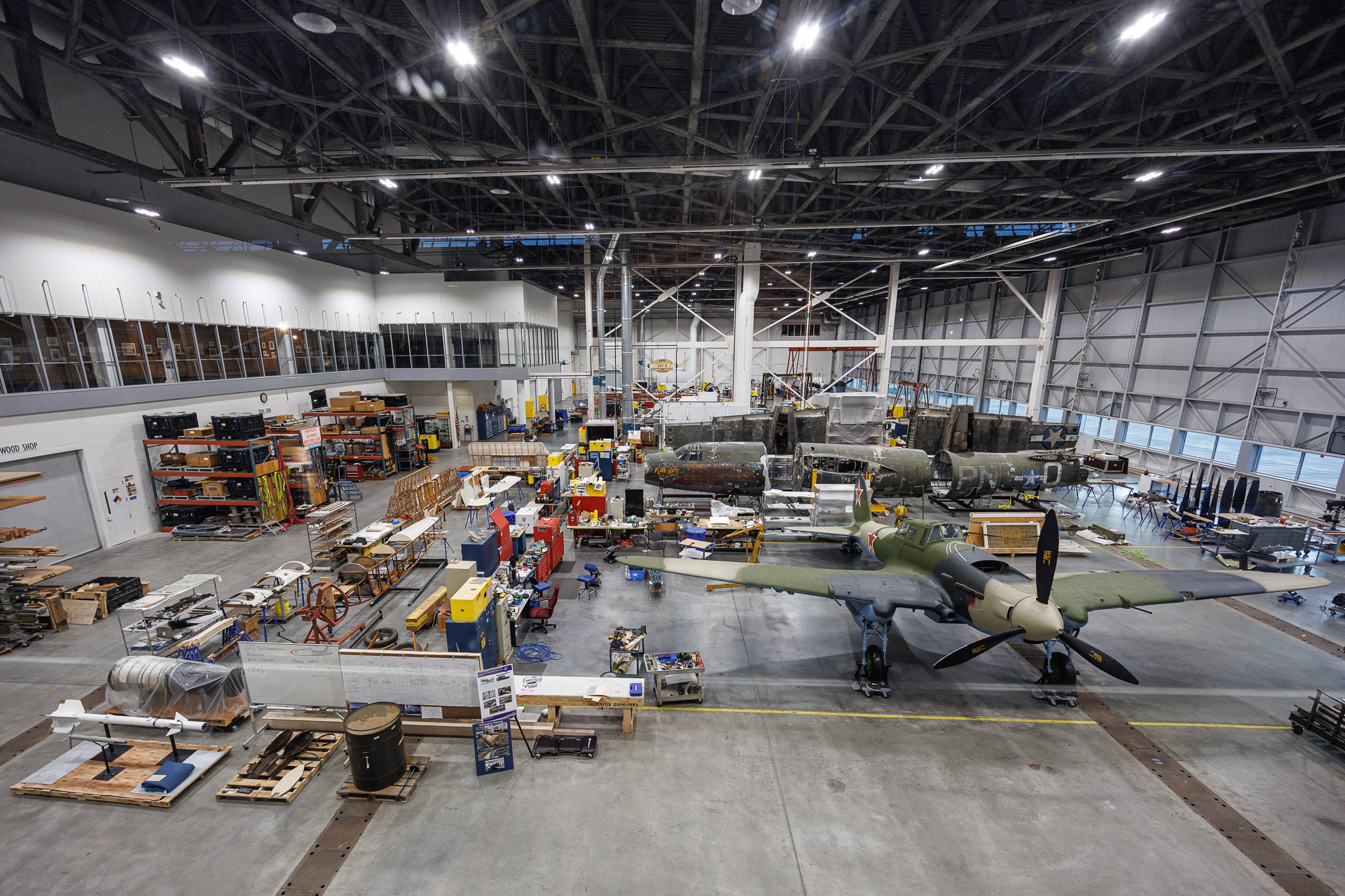 Le temps passe vite, il est déjà 17h30 et le musée ferme. Nous passerons rapidement devant le hangar dédié à la restoration où de nombreux matériels sont en travaux.