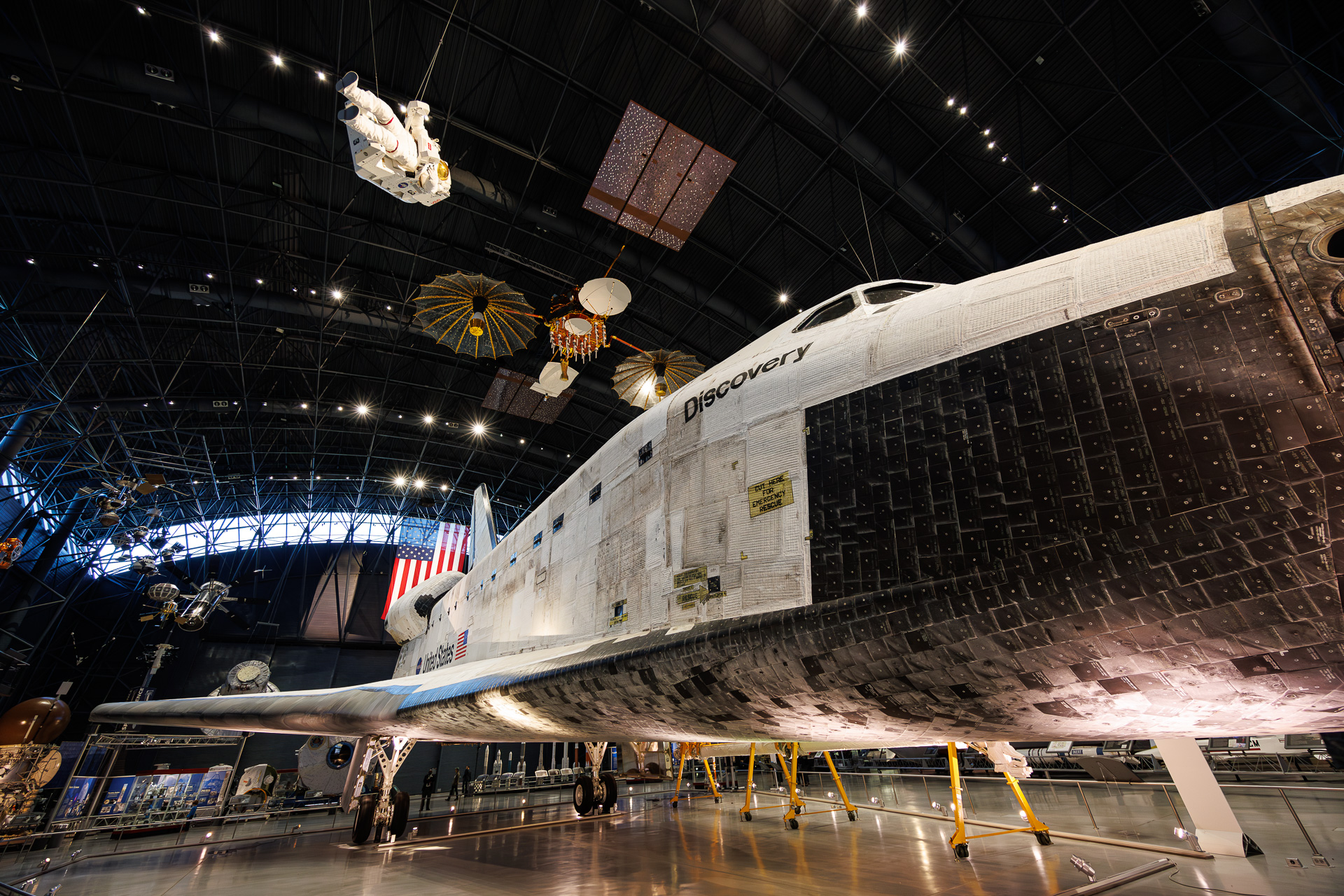 Parce que Discovery a effectué tous les types de missions que la navette spatiale était censée effectuer, il incarne bien les 30 ans d’histoire des vols spatiaux habités américains de 1981 à 2011. Nommé d’après des voiliers d’exploration célèbres, Discovery est préservé aussi intact que possible car il a volé pour la dernière fois en 2011 lors de la 133ème mission de la navette spatiale. La NASA a transféré Discovery au musée en avril 2012 après un vol de livraison au-dessus de la capitale nationale.