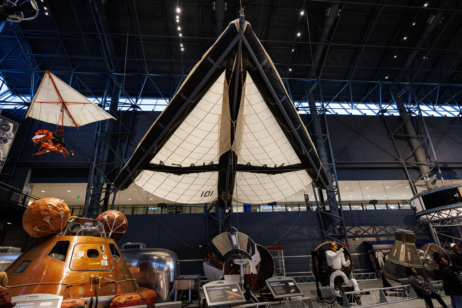 Cette aile delta gonflable faisait partie d’un programme de test au début des années 1960 pour développer un système contrôlable permettant de faire atterrir des capsules Gemini sur terre, plutôt que de les parachuter dans l’océan. Elle a été utilisée par North American Aviation, le principal sous-traitant de la NASA pour le parapente, pour mener une série d’expériences de vol plané et d’atterrissage à la base aérienne d’Edwards en Californie. En raison de difficultés techniques et d’un calendrier serré pour le programme Gemini, le concept n’est jamais devenu opérationnel.