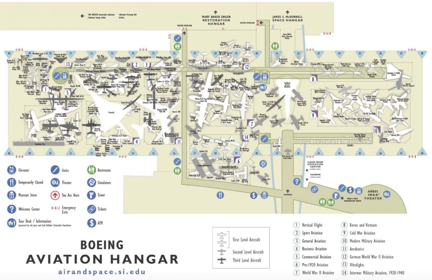 Voici le plan qui nous est remis à l’entrée. Il y a de quoi faire, en sachant que chaque aéronef a son panneau de présentation (uniquement en anglais).