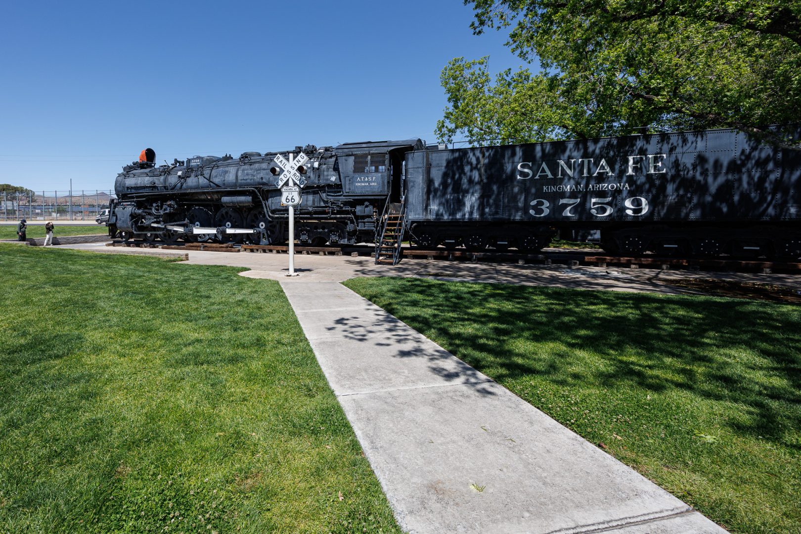 Nous passons près du célèbre train sans lequel la ville de Kingman n’existerait pas. La locomotive est énorme 😯. C’est la Santa Fe 3759, une locomotive à vapeur construite en 1928 par Baldwin Locomotive Works. Elle a parcouru plus de 2,4 millions de kilomètres entre Chicago et Los Angeles avant d’être offerte à la ville de Kingman en 1957.