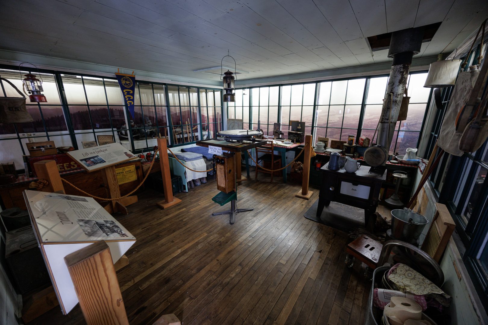 Reconstitution d’une tour de guet-incendie construite en 1930. C’est à partir d’une telle tour que les premières fumées étaient détectées.