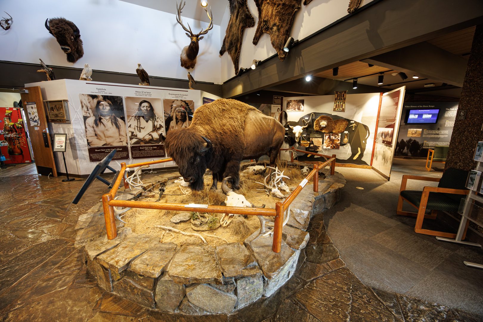 En 2020, la zone a été officiellement restituée aux tribus indiennes confédérées Salish et Kootenai. La visite du parc se fait à bord de son véhicule, aussi nous allons chercher une autorisation ($) auprès du visitor center et nous en profitons pour faire un petit tour du musée.