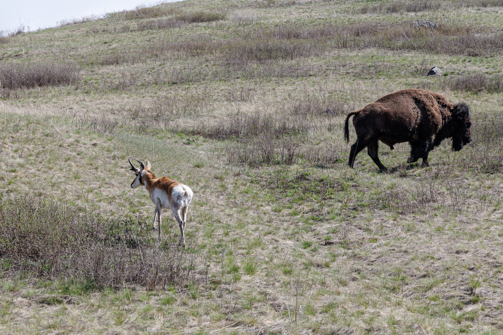 Belle cohabitation entre une antilope d’Amérique et un bison… l’indifférence totale 🤣 !