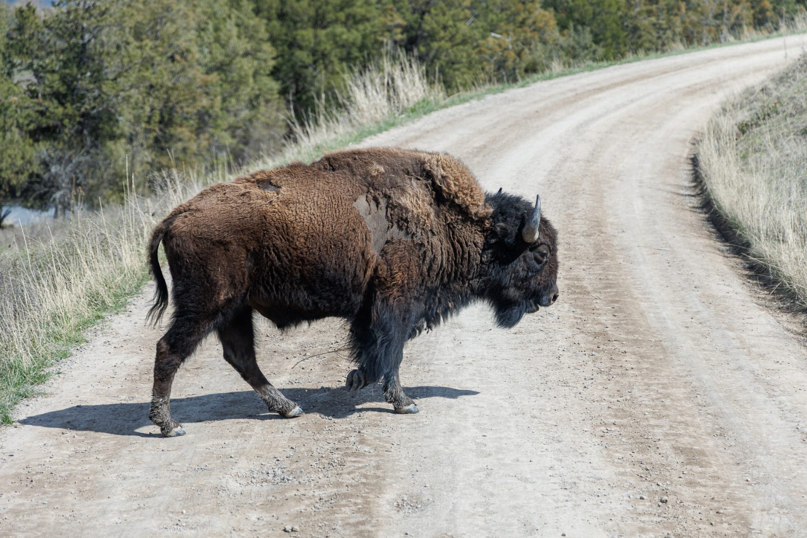 Nous prendrons donc la deuxième route, Prairie Drive. Il s’agit d’un parcours de 22 kilomètres qui mène à une aire de retournement et revient à l’entrée. Nous aurons la chance de voir plein de bisons 🤩 !