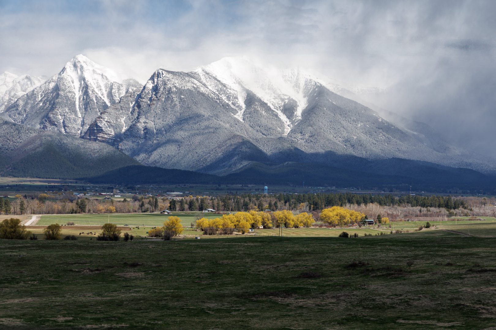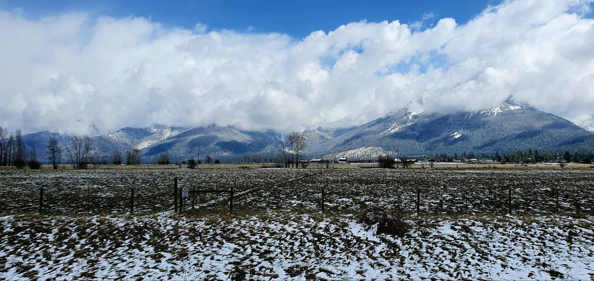 Au loin nous apercevons la belle chaîne des Montagnes Mission qui font partie des montagnes Rocheuses.