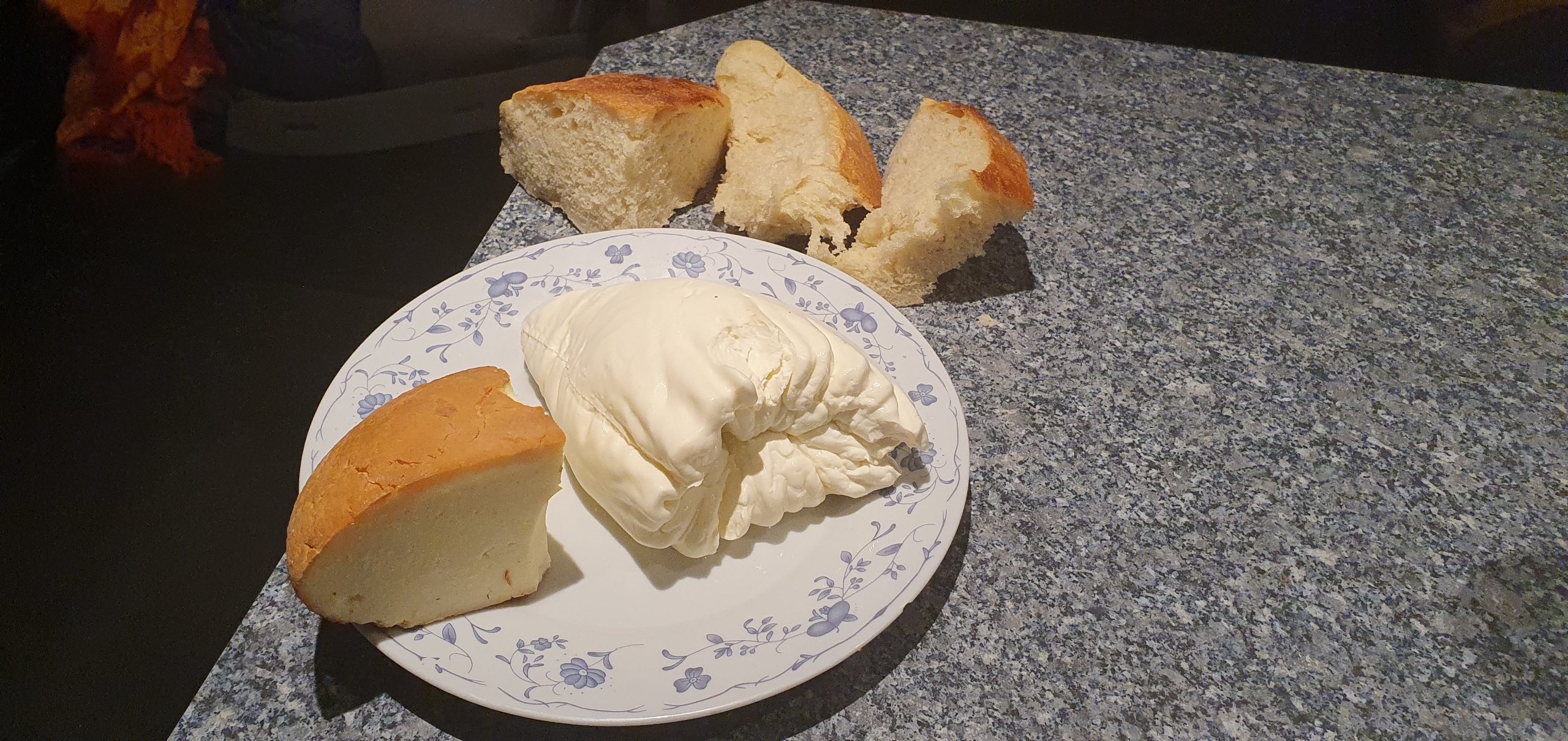 Nous nous poserons quelques kilomètres plus bas au bord de la rivière. Bien nous en a pris car un habitant du village avec son tracteur est venu nous faire un petit bonjour sympathique. Une heure après, il est revenu avec une assiette de fromage et quelques tranches de pain tout chaud. Nous découvrons avec bonheur l’accueil bosniaque 😊. En quelques heures, message sur le blog, appels de phares, salut de la main, sourires, quel bonheur 👍🙂 Et devinez qui va se régaler avec ces bons fromages faits maison 😜 ?