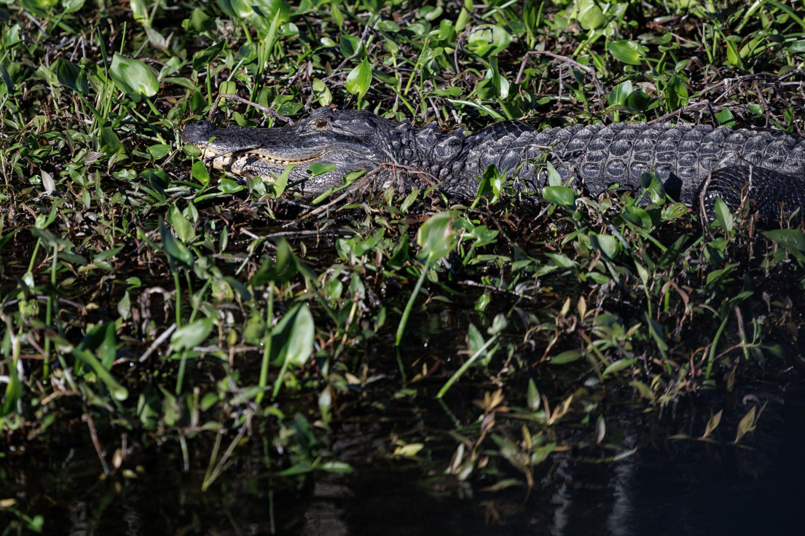 Et bien tapis dans l’herbe haute… un bel alligator !