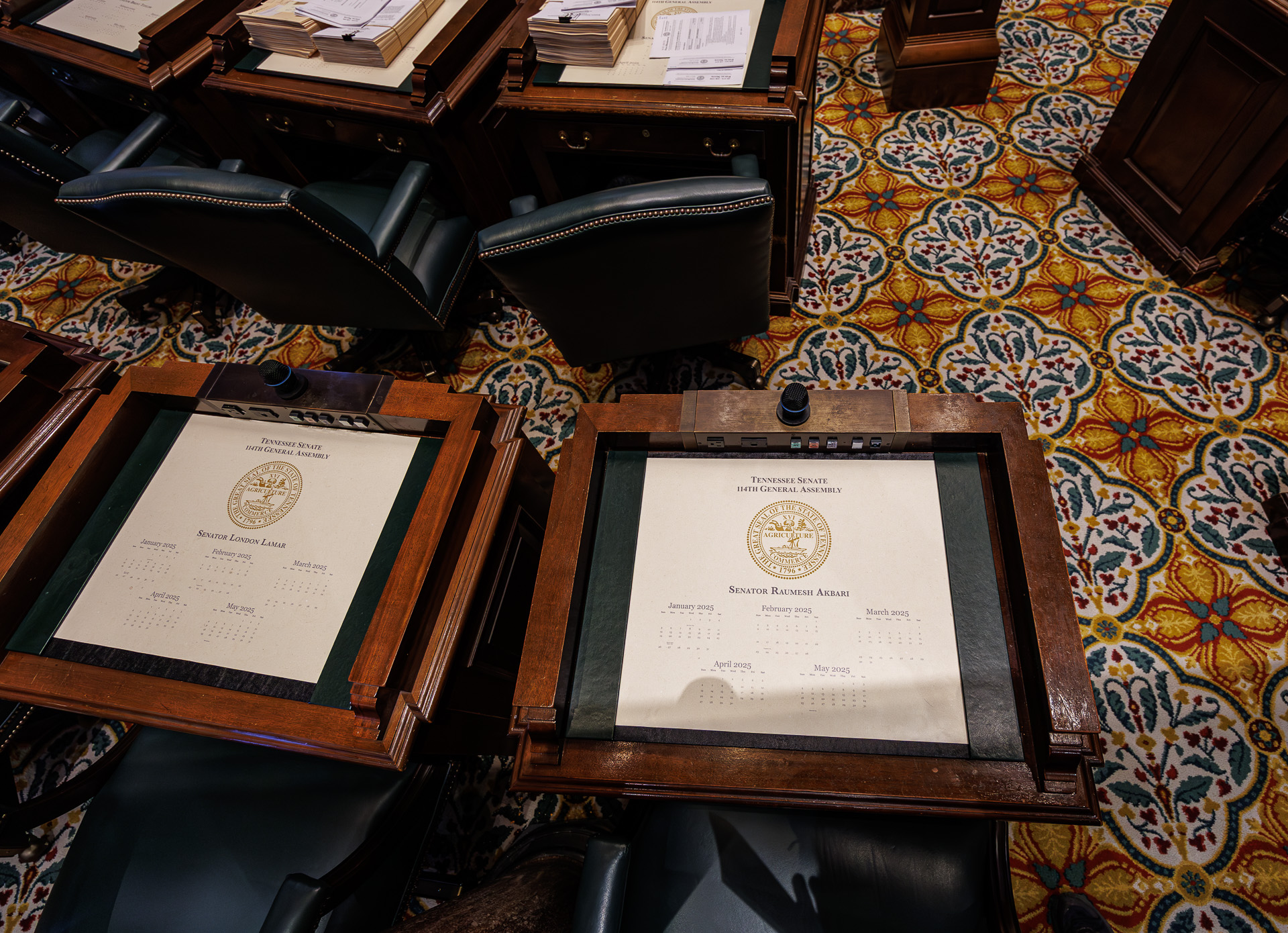 A l’étage, nous découvrons aussi la salle du Sénat du Tennessee (chambre haute comme en France) composé de 33 membres élus pour quatre ans. Depuis la dernière assemblée générale (2023-2025), le Sénat  est composé de 27 républicains et 6 démocrates et la Chambre des Représentants, de 75 républicains et 24 démocrates donc… Nashville est une ville républicaine !
