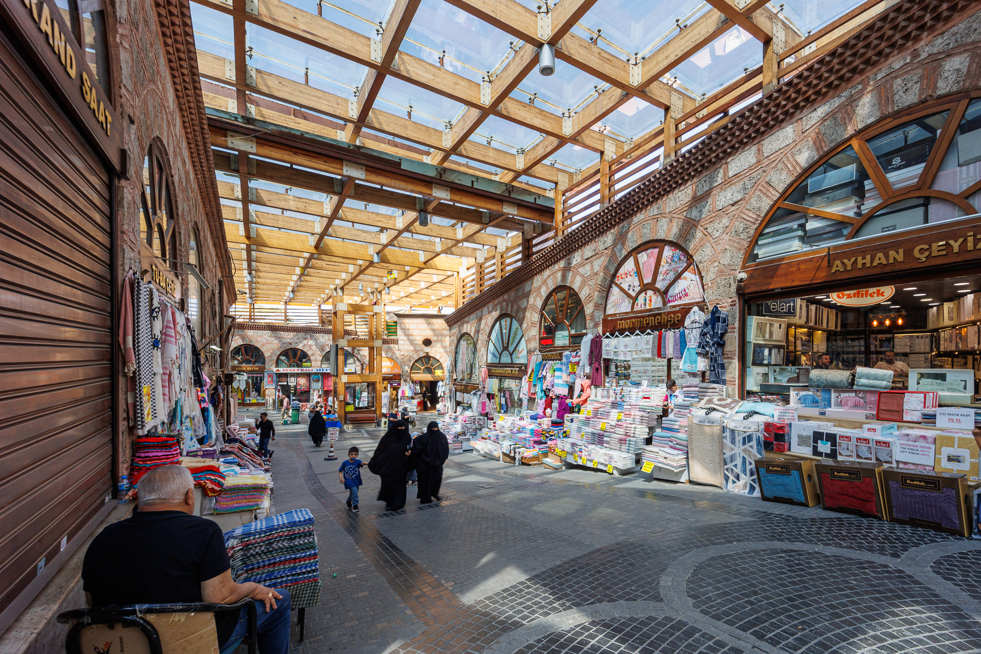 Le Grand Bazar est le plus vieux marché de la ville. Il remonte à la période ottomane à l’époque où la ville était le centre de la fabrication des soiries royales et de la confection de caftans, longue tunique traditionnelle, ainsi que celui des coussins, de la broderie et d’autres soieries ornant les palais impériaux jusqu’au 17ème siècle.