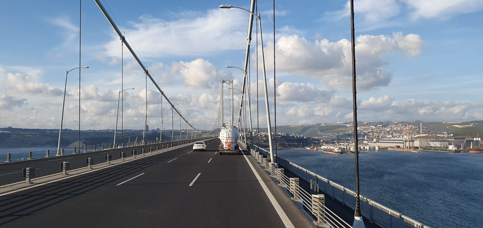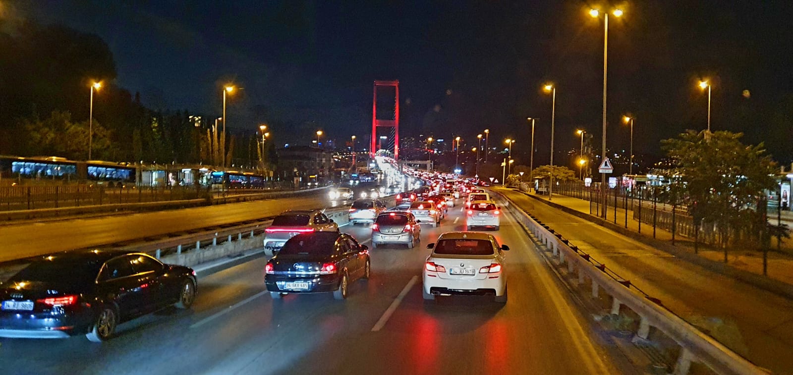 Apres la visite de Bursa, nous prenons la route en direction d’Istanbul. Nous empruntons le Pont Osmangazi qui permet de franchir le golfe d’Izmit à environ 50 kilomètres au sud-est d’Istanbul. Il est 17h50 et il nous reste environ 60 kilomètres à parcourir.