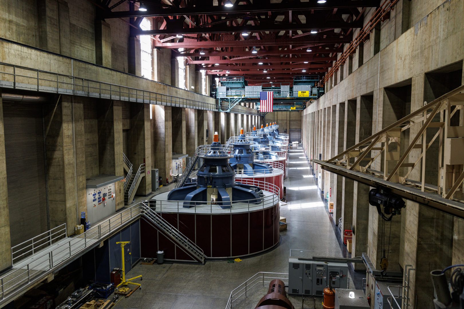 Les 17 turbines (Francis, 130MW chacune environ) sont localisées dans des bâtiments qui se trouvent le long du fleuve Colorado juste en aval du barrage. Il y a 9 turbines du côté Nevada et 8 turbines seulement côté Arizona, plus 2 petites turbines Pelton (2,4 MW) servant pour les besoins propres du barrage.