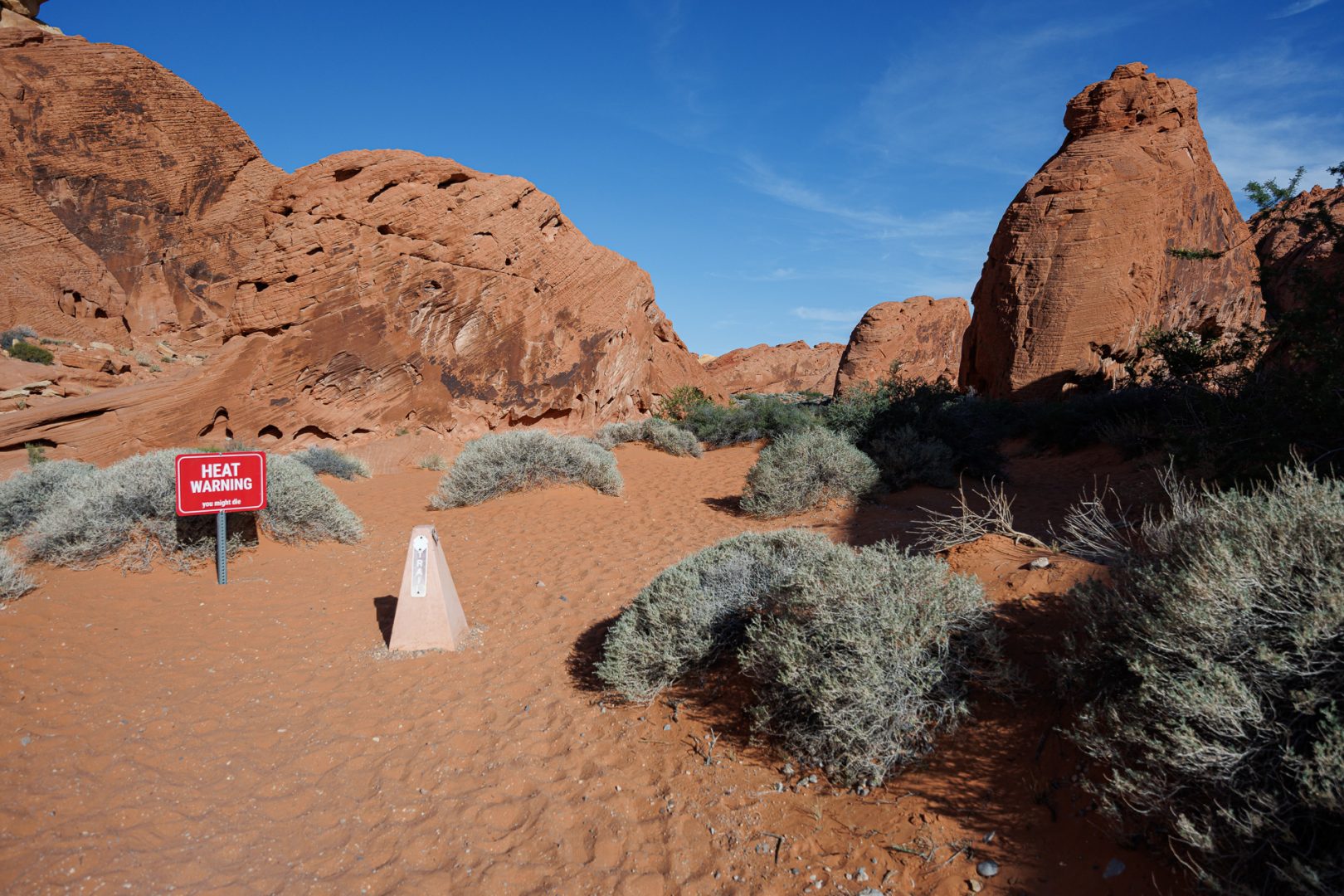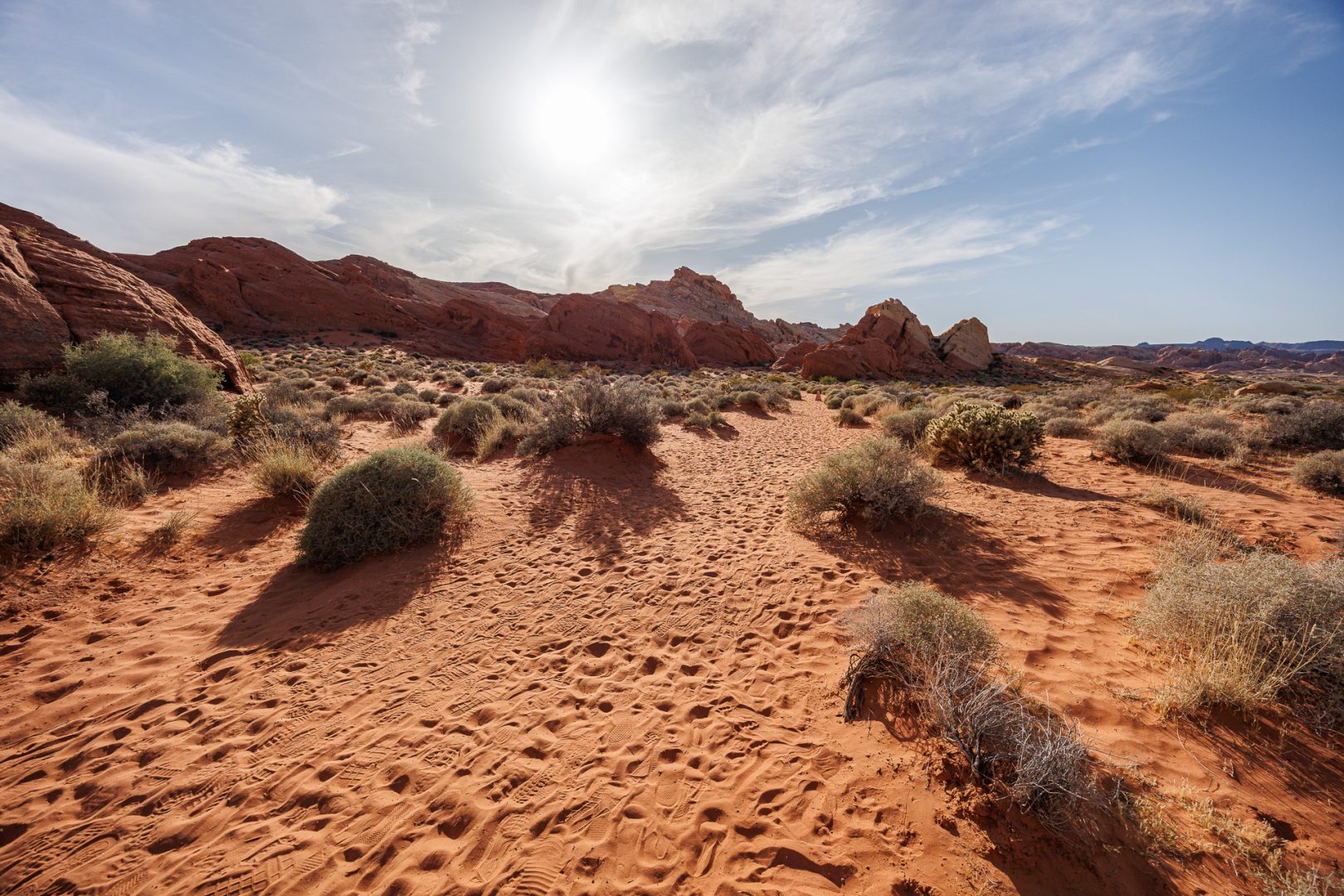 Nous voilà arrivés au parc d’Etat de la vallée de feu en ce début d’après-midi. Nous allons donc commencer à le découvrir. Situé à environ 80 km au nord de Las Vegas, le Valley of Fire State Park est le plus ancien et le plus grand parc d’État du Nevada. Il est célèbre pour ses formations spectaculaires de grès rouge aztèque qui, sous les rayons du soleil, semblent s’enflammer 🤩. Sur plus de 18000 hectares, ce paysage désertique abrite aussi des arbres pétrifiés et des pétroglyphes amérindiens vieux de plus de 2000 ans. C’est un site privilégié pour la randonnée et la photographie, et nous allons en profiter 👍.
