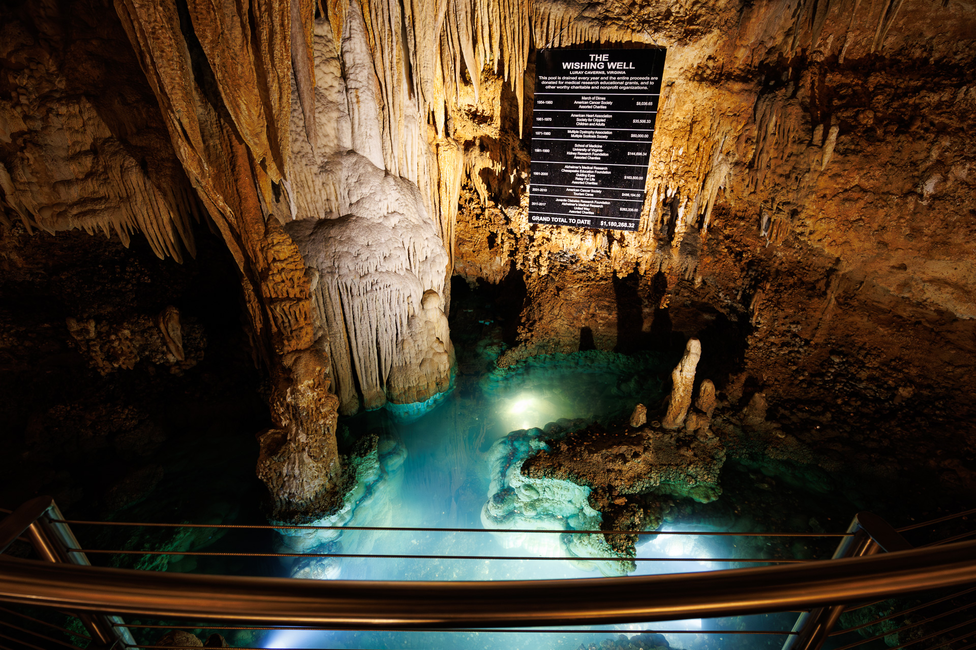 Près de la sortie un bassin où, comme souvent, les visiteurs jettent des pièces de monnaie pour… 🙄 Sauf que là, le jet est stimulé par un panneau qui précise vers quelles associations ou fondations pour la recherche les $1,180,268.32 ramassés ont été versés de 1954 à 2017. Pas mal du tout 👍