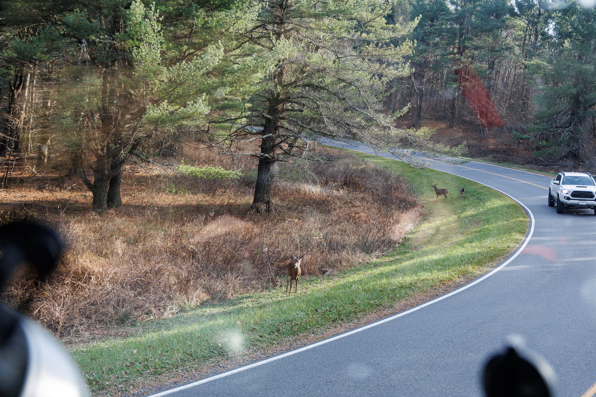 Sur la route, nous ferons quelques rencontres sympathiques. Les chevreuils payent un lourd tribu à la circulation routière…