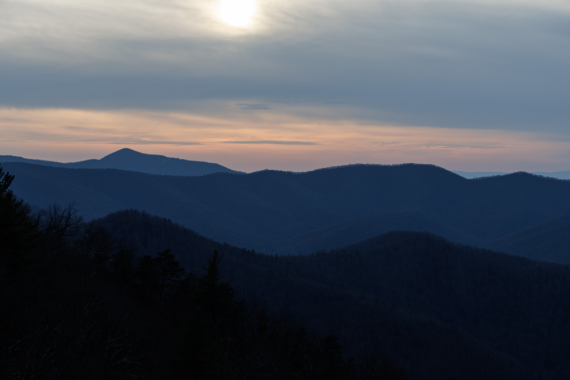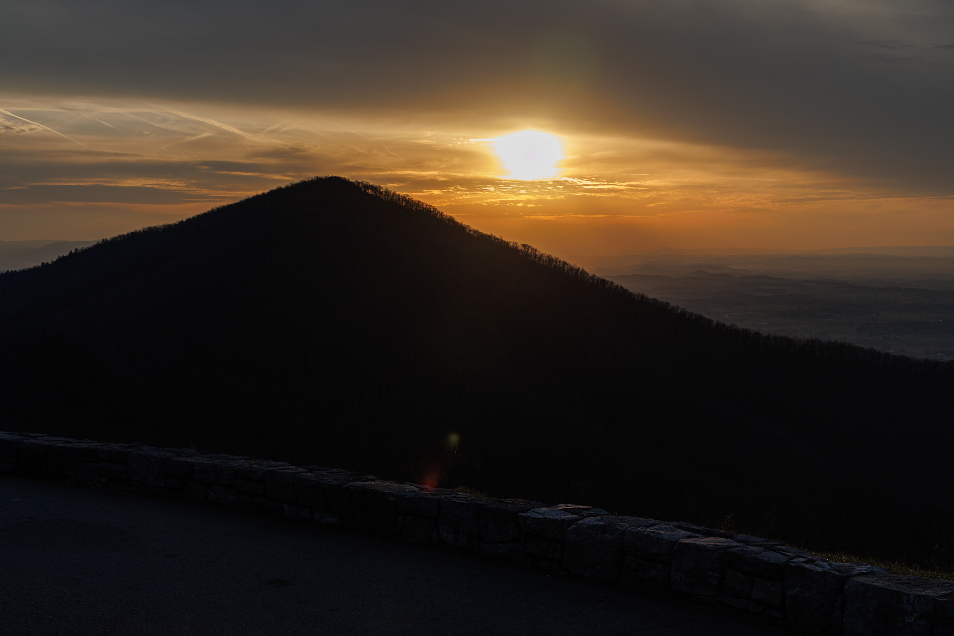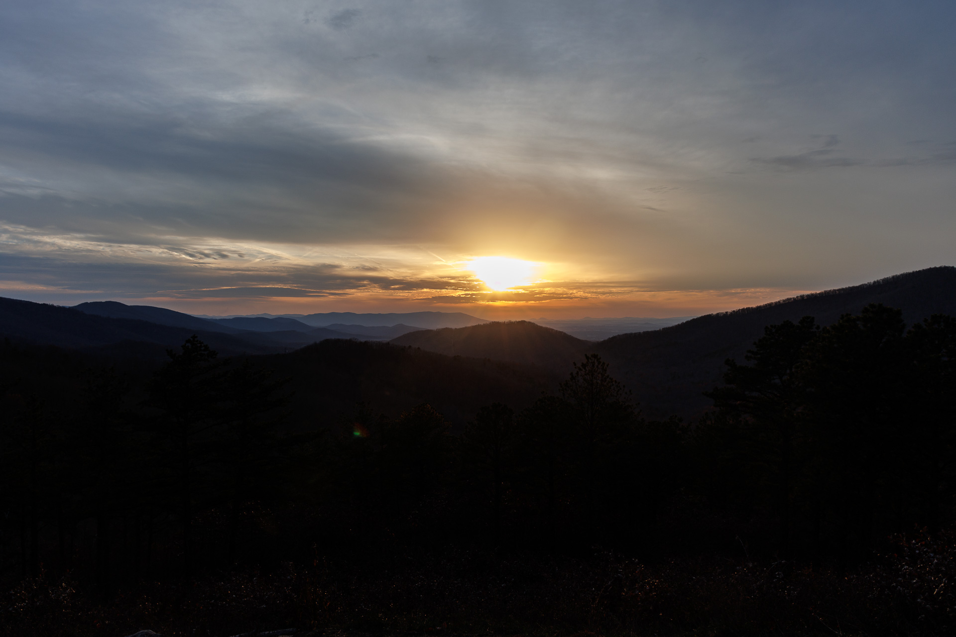 Et nous retrouvons les Blue Ridge Moutains avec, déjà, le soleil couchant.