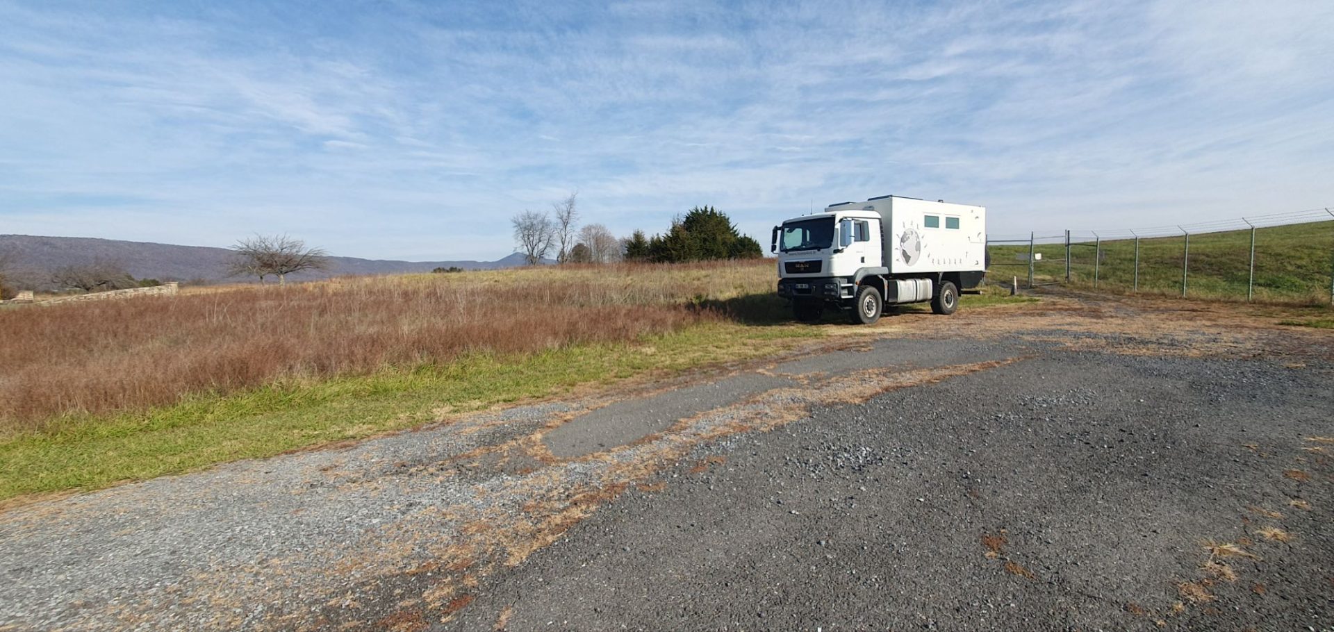 188959 km : Petite photo de notre bivouac de la nuit, juste à côté de la piste de l’aérodrome de Luray qui nous surplombe sur la droite, sans trafic de nuit 😉 Trouvé par hasard, mais parfait pour nous.