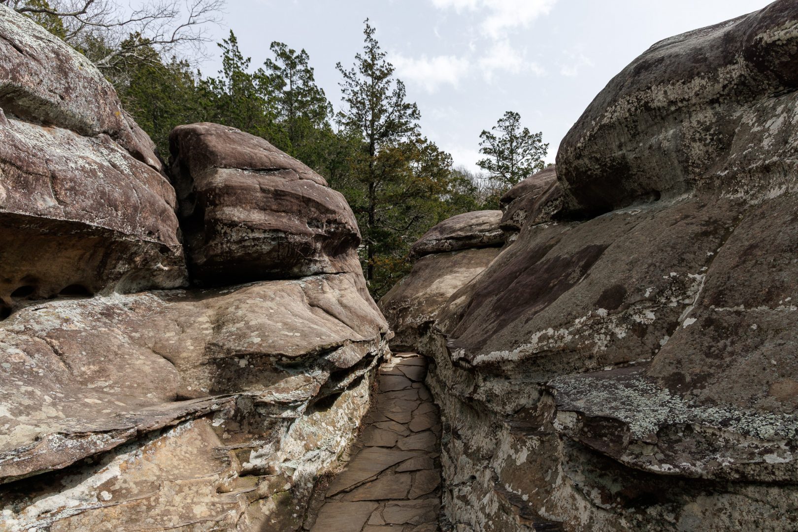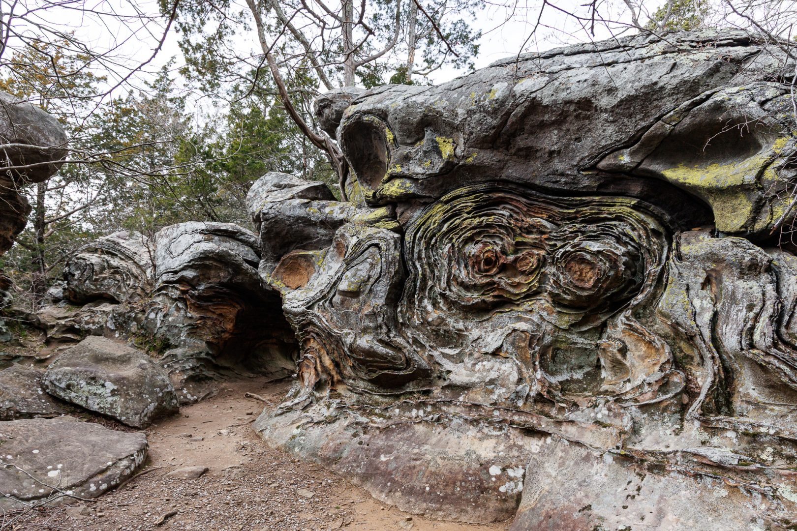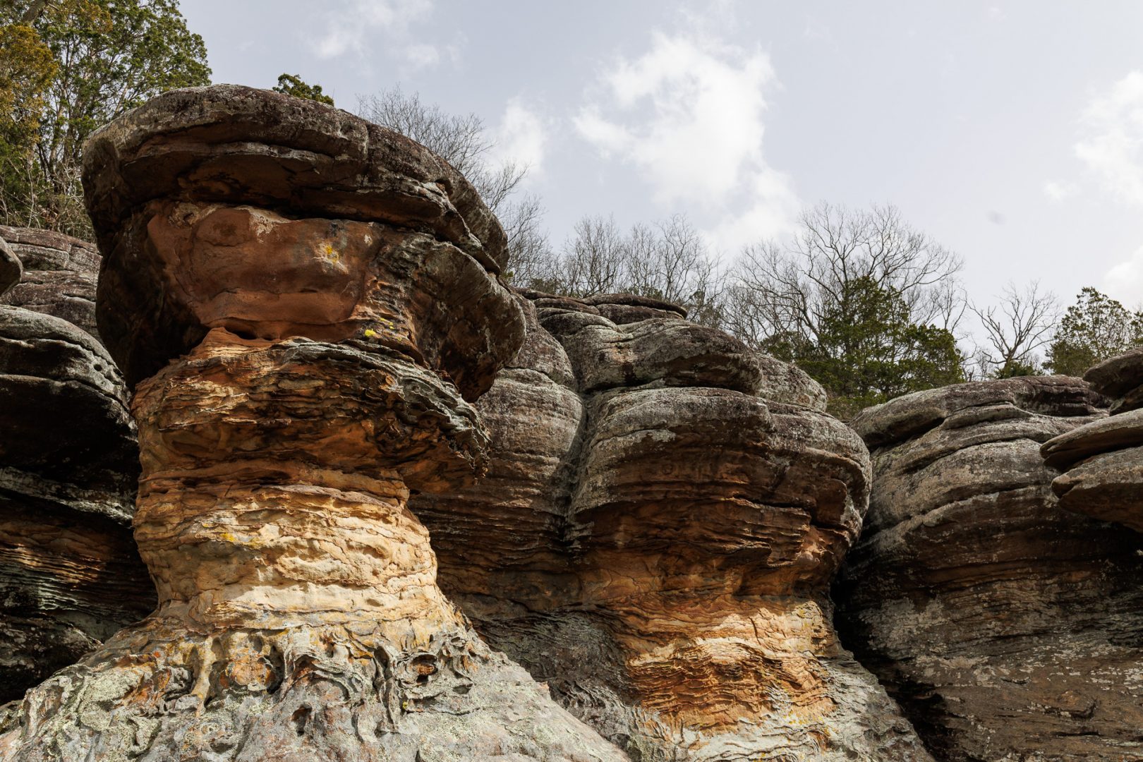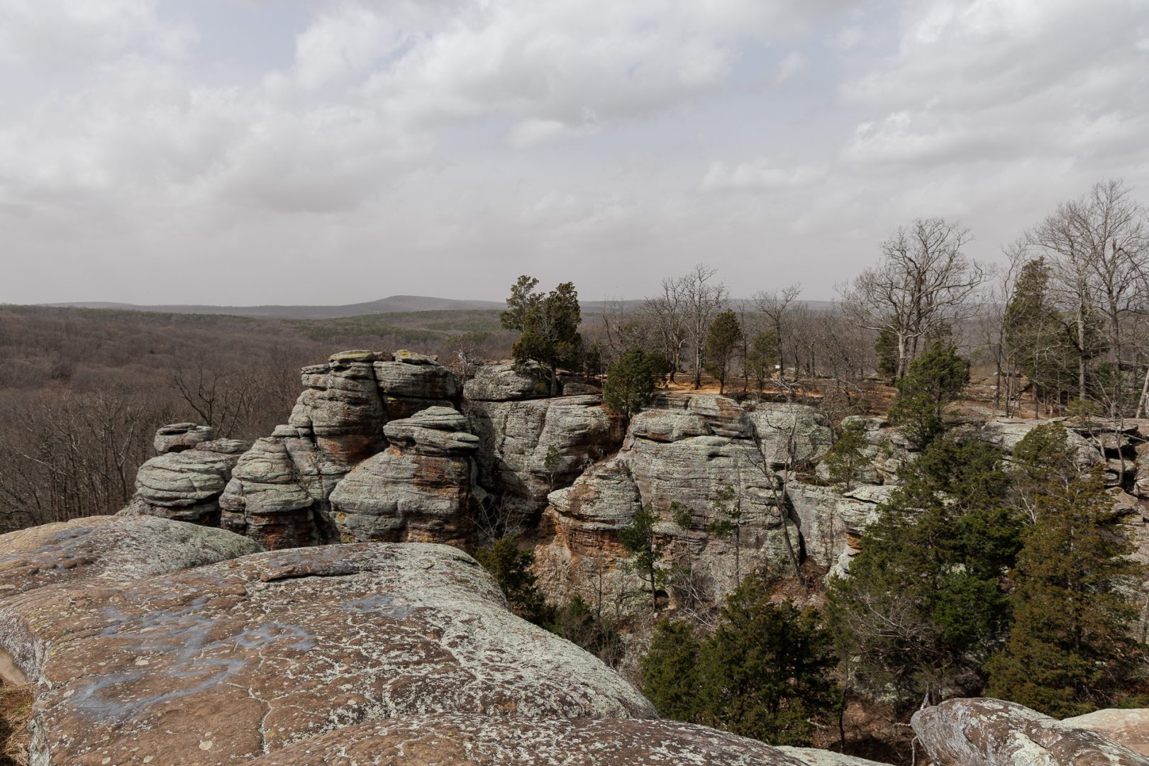 La morphologie du Jardin des Dieux est beaucoup plus abrupte et rocheuse que la majeure partie de l’Illinois. Des érosions relativement spectaculaires ont créé des hoodoos et d’autres formations de grès inhabituelles, offrant des vues panoramiques sur la forêt nationale de Shawnee,