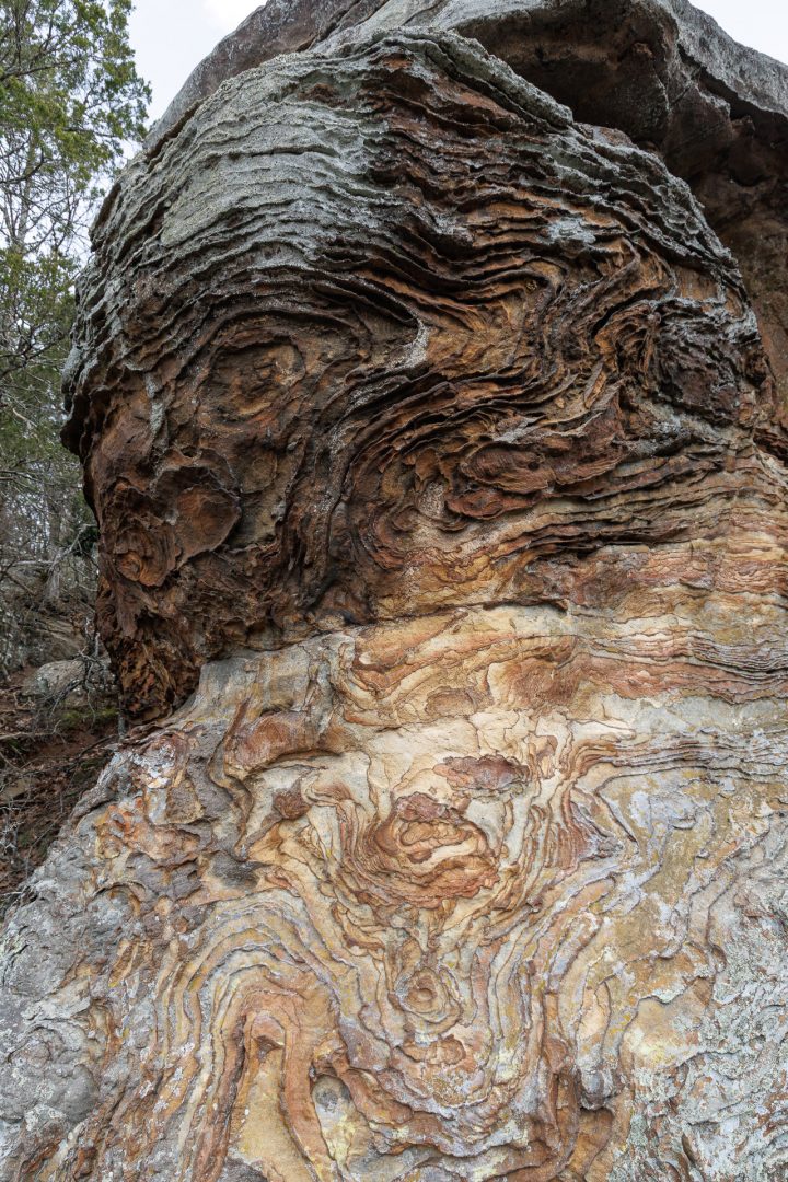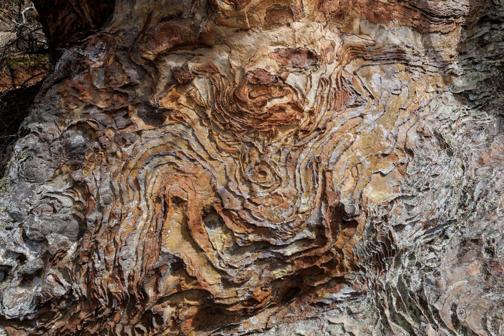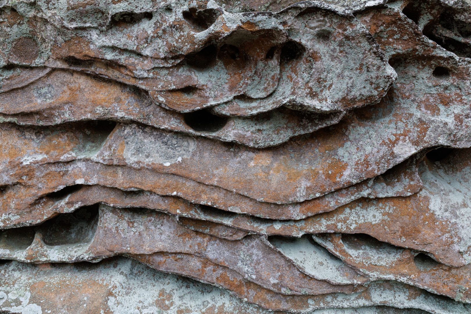 Un peu plus loin l’érosion a sculpté la roche d’une toute autre manière. Il semble que la présence de fer ait structuré cette érosion si particulière en y ajoutant aussi de jolies couleurs. Nous n’en savons pas plus (Arnaud, si tu nous lis et que tu veux nous éclairer, n’hésite pas, nous compléterons notre billet avec plaisir 😉).