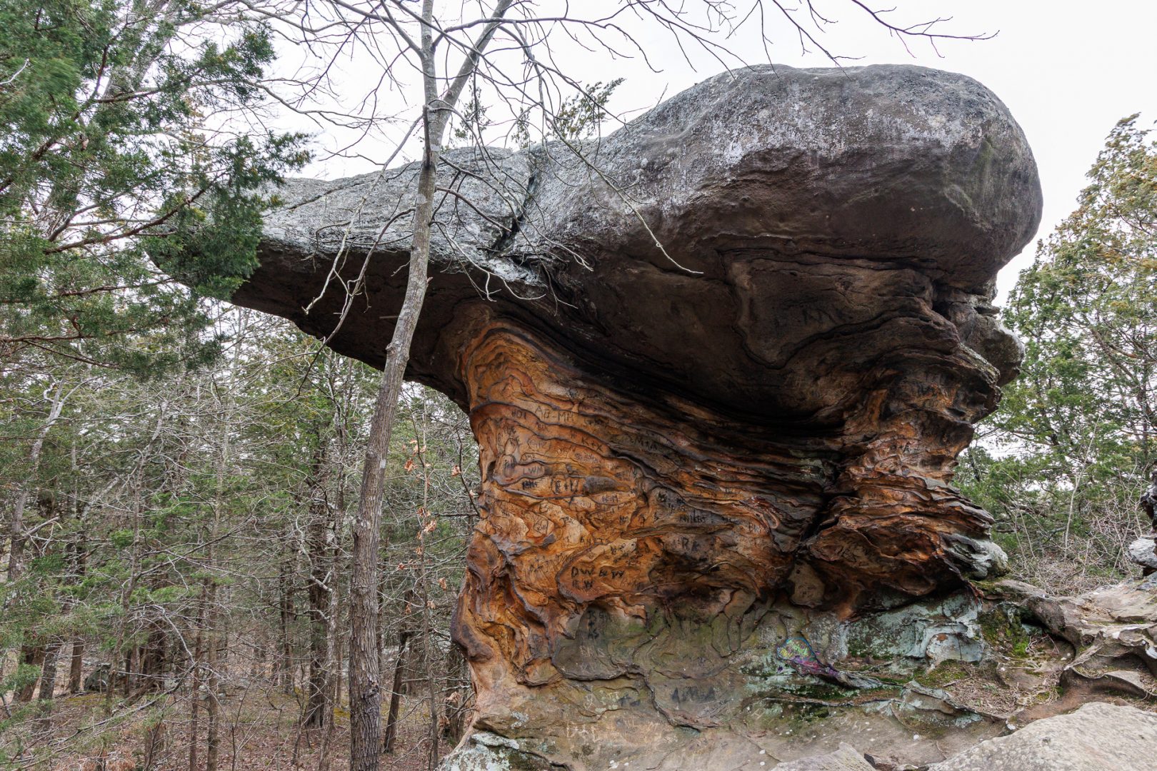 Pendant la période du Carbonifère (il y a environ 300 millions d’années), les conditions géologiques locales ont posé un épais lit de grès gris dans ce qui est maintenant le sud de l’Illinois. Ce lit de grès a ensuite été soulevé, et le Jardin des Dieux fait partie d’un plateau de grès soulevé. Contrairement à une grande partie de l’Illinois, ce plateau n’a jamais été recouvert de glaciers.