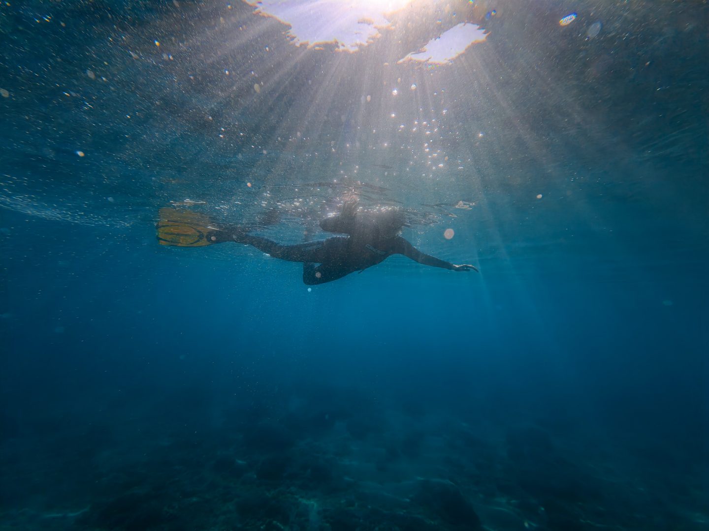 Geneviève s’approche avec son masque… c’est bon signe, elle doit voir un peu les poissons 😊 !