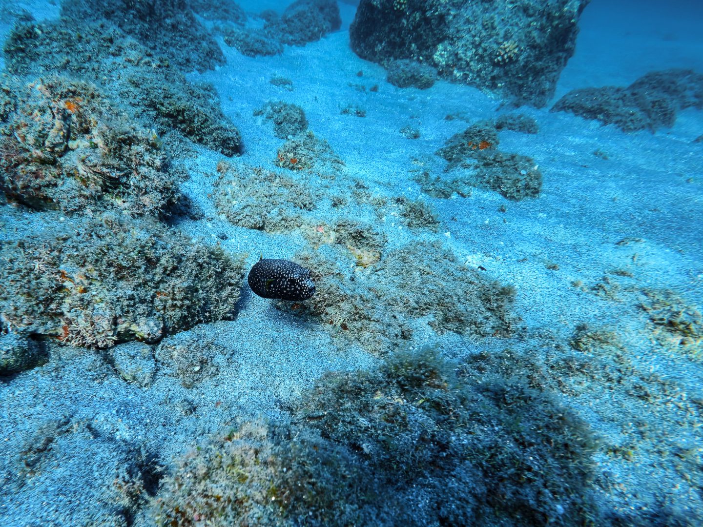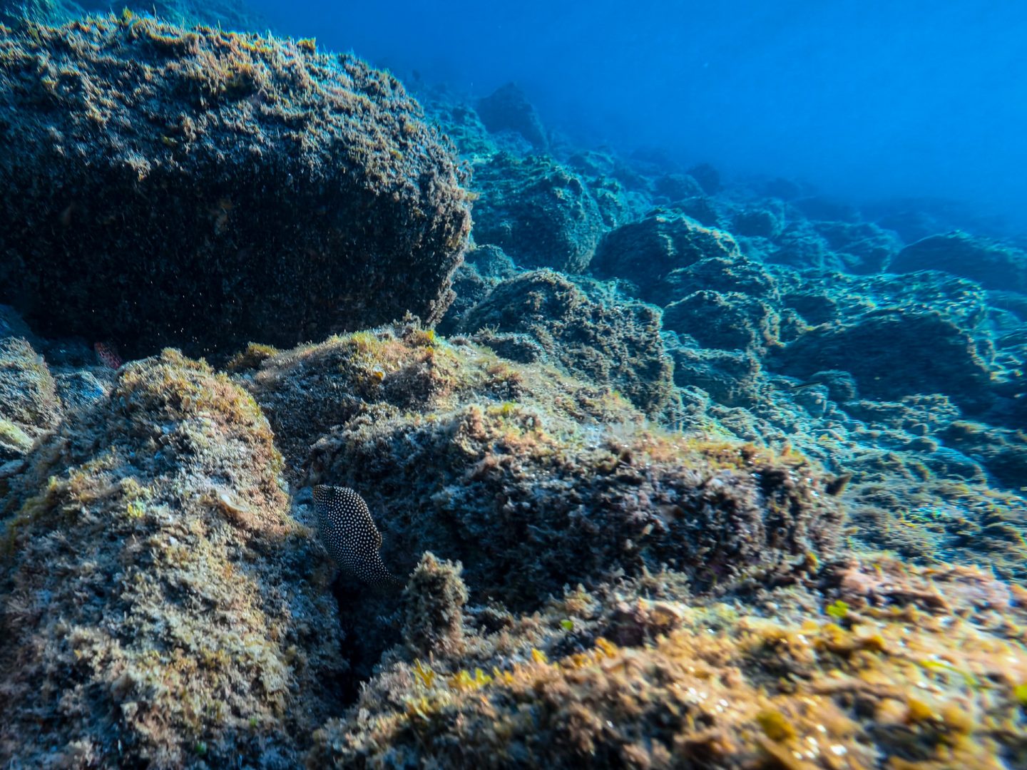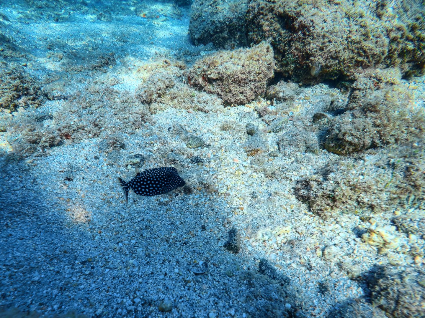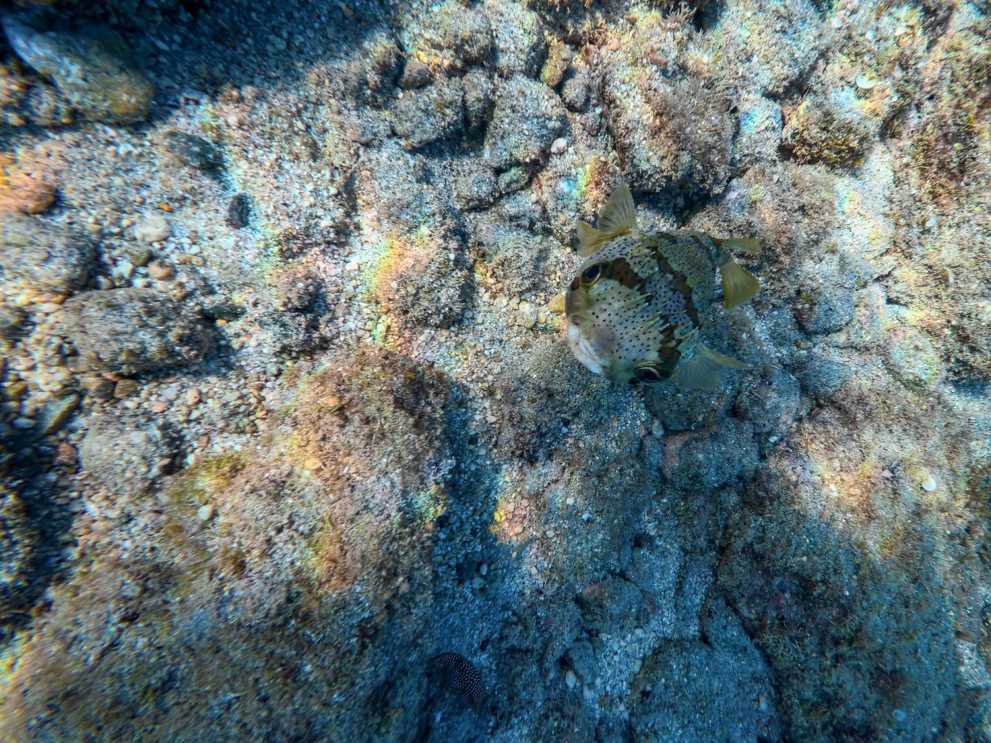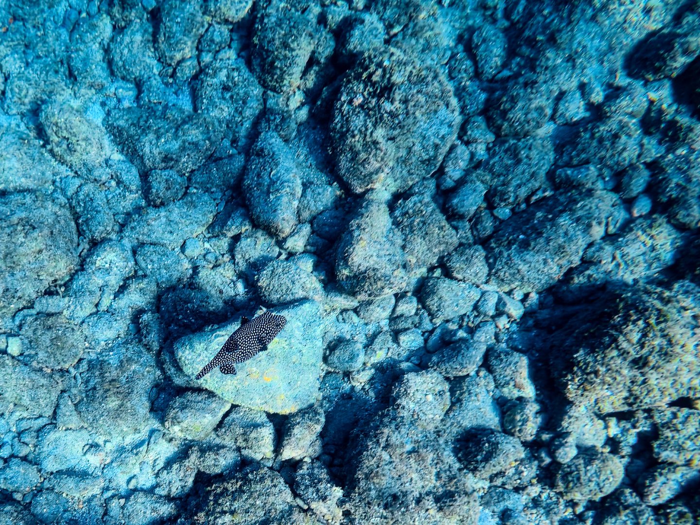 Notre belle balade en snorkeling est terminée. La sortie de l’eau est un peu sportive car il faut marcher sur des gros cailloux recouverts de mousse avant de rejoindre la plage de sable… Ça glisse un peu ⛸️