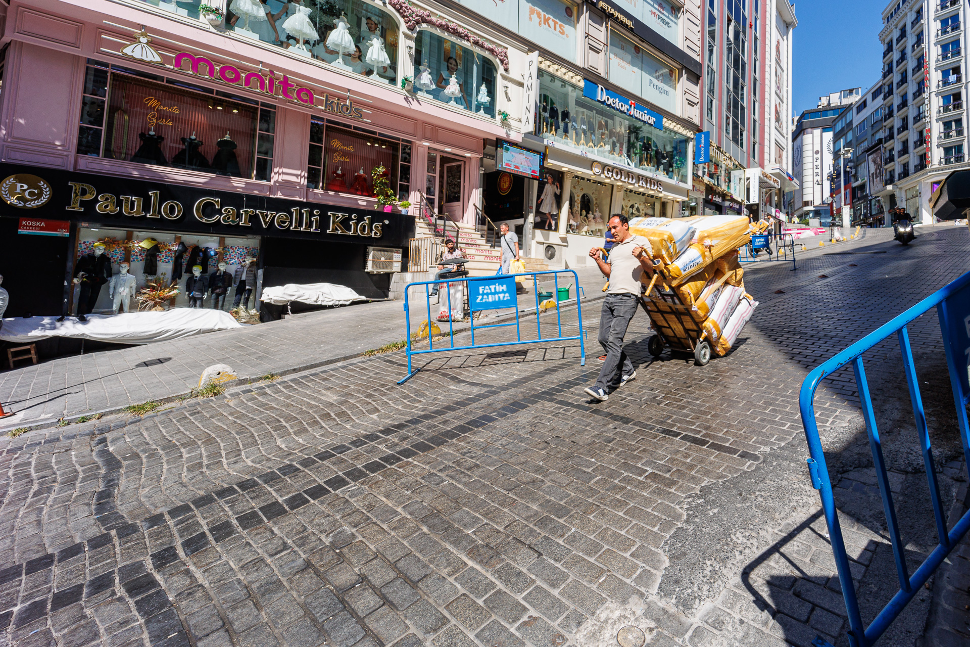 C’est très sportif… Et cela peut même être dangereux quand on voit le volume de marchandises transportées et le dénivelé des rues !!