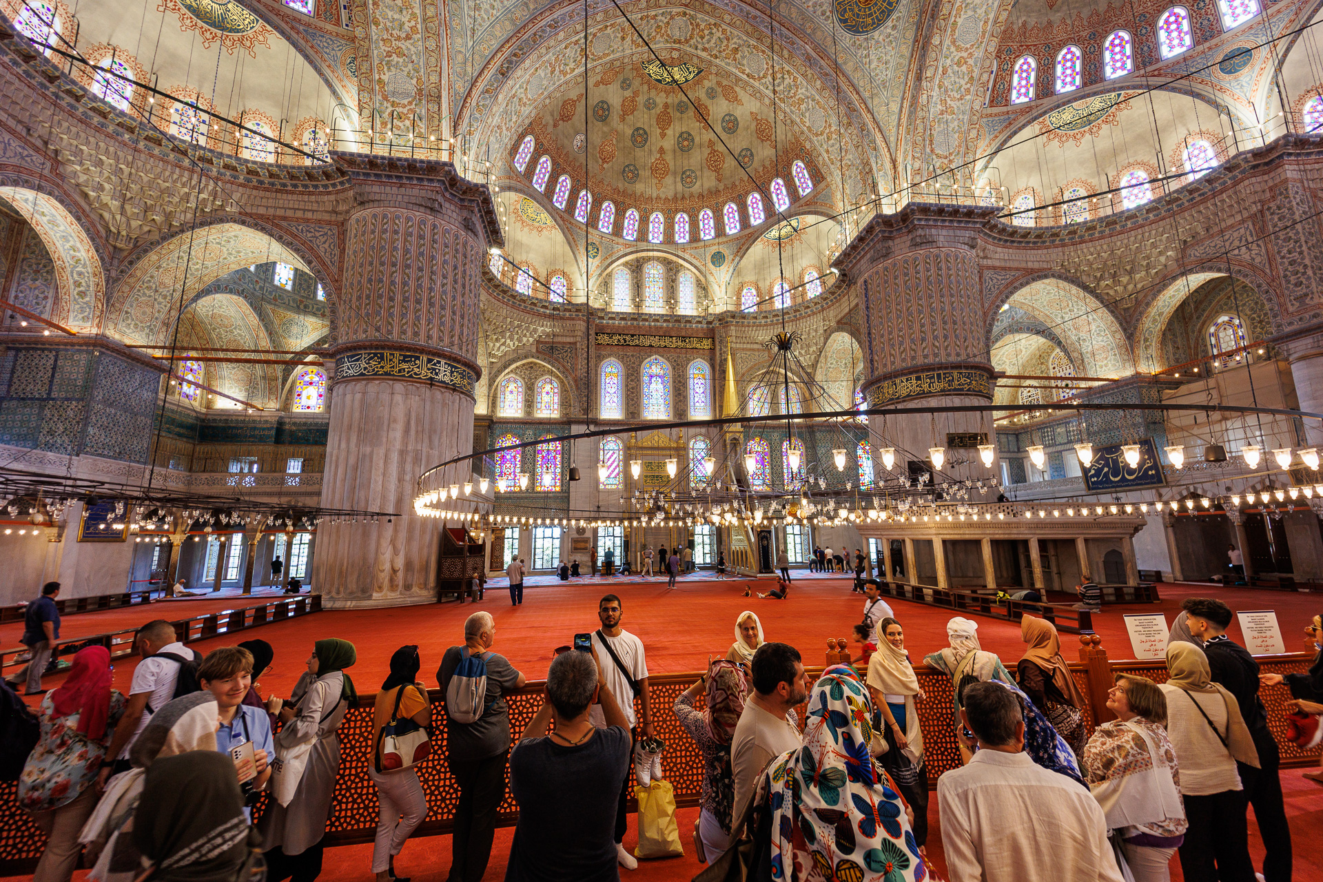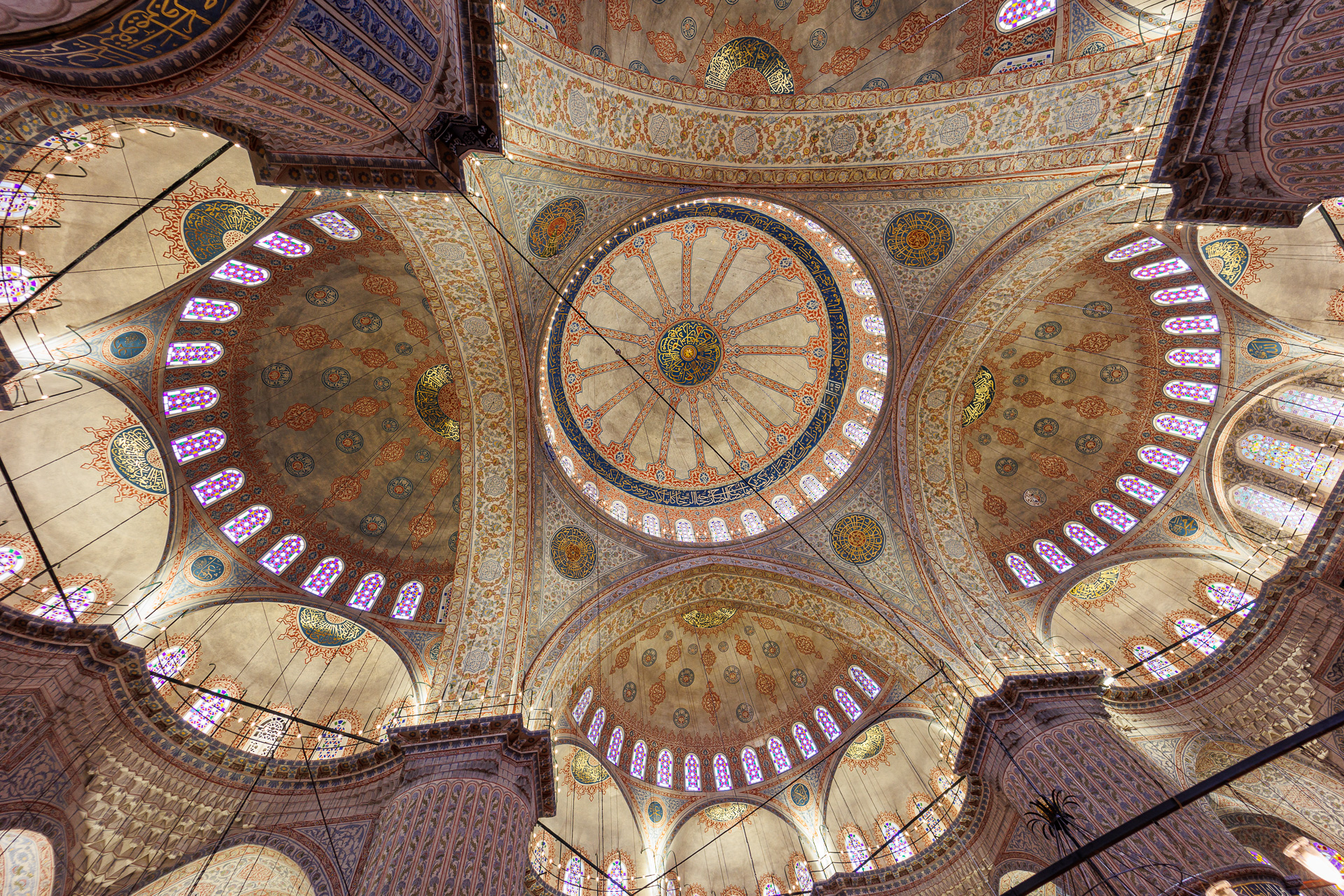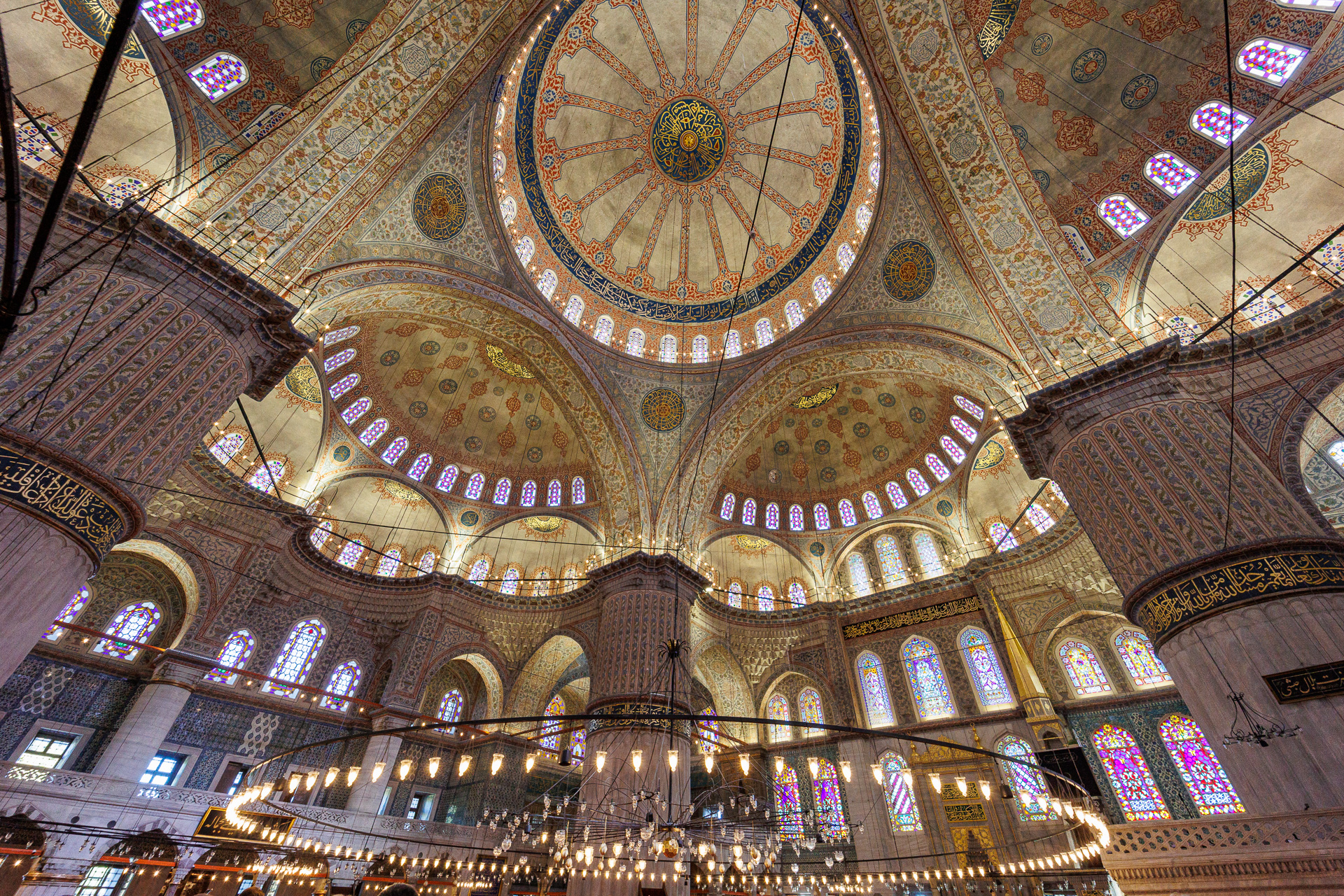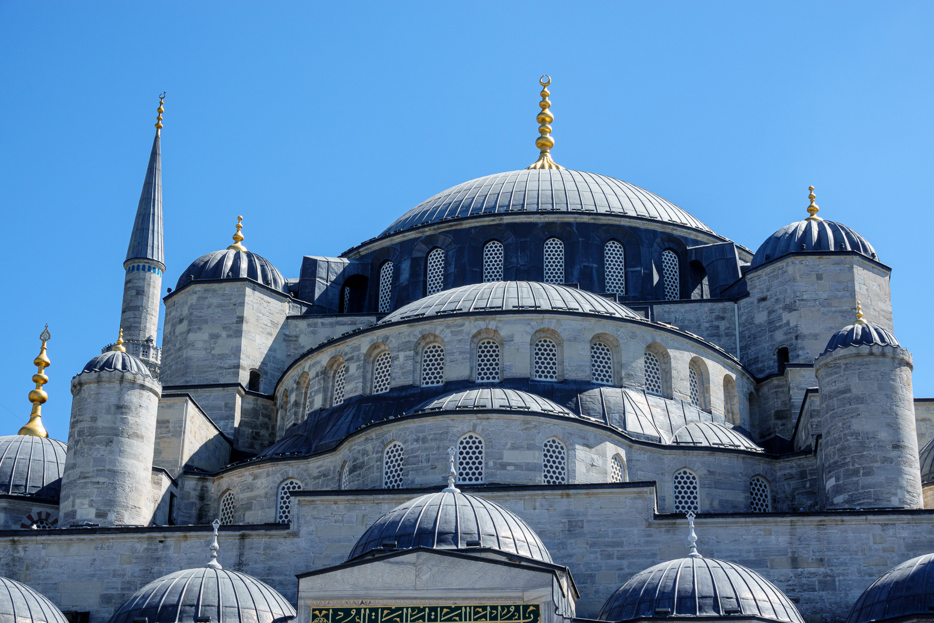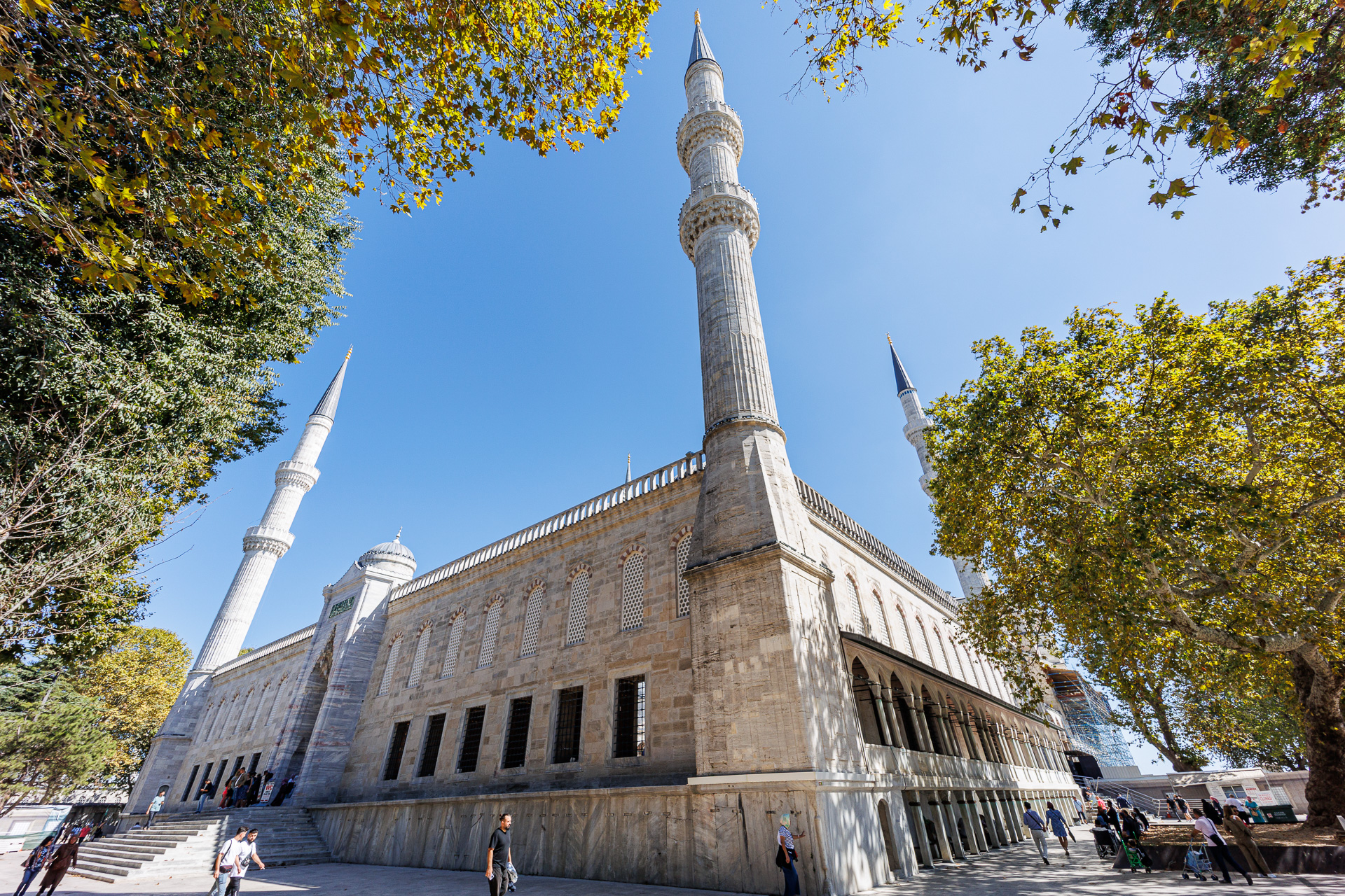 La mosquée bleue, mosquée du sultan Ahmet ou mosquée Sultanahmet (en turc Sultan Ahmet Camii ou Sultanahmet Camii) fut construite entre 1609 et 1616, sous le règne du sultan Ahmet Ier. Les céramiques à dominante bleue qui ornent les murs intérieurs lui ont valu son nom. Elle est un symbole de grandeur avec ses treize dômes et ses six minarets.