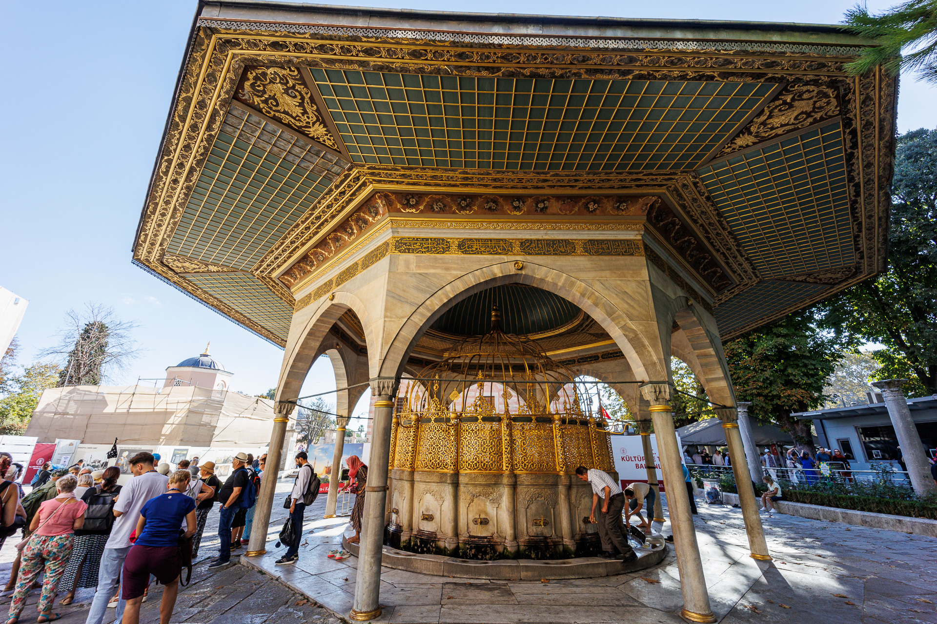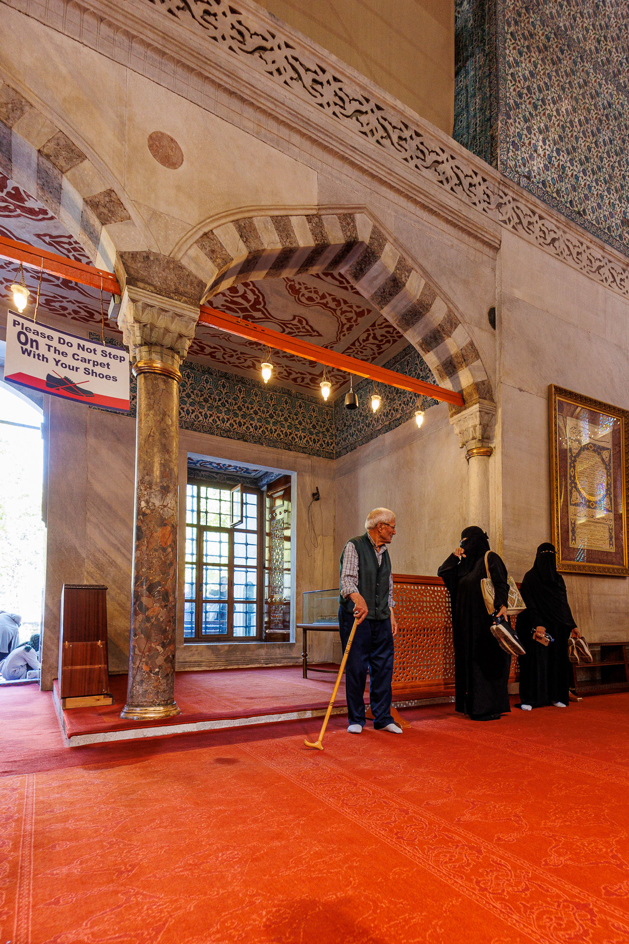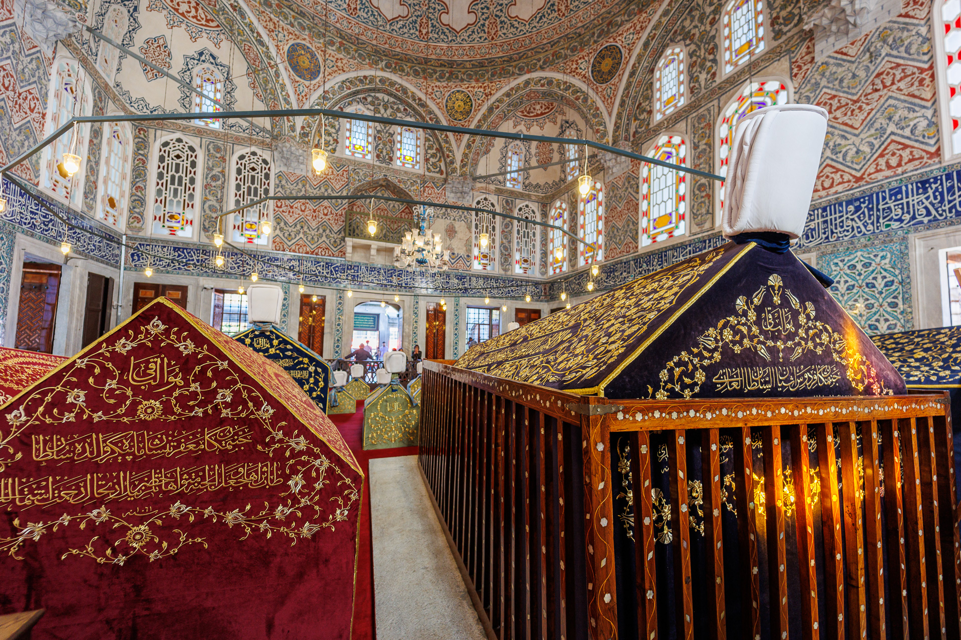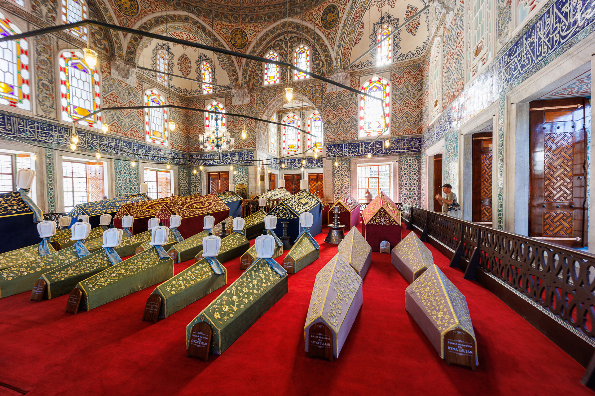 Le tombeau du Sultan Ahmet 1er : Ahmed Ier fut le 14ème sultan ottoman et calife de l’islam. Il régna du 22 décembre 1603 au 22 novembre 1617. La mosquée bleue fut bâtie sous son règne et porte de ce fait son nom « Sultanahmet ». La construction de la tombe s’est étalée entre 1617 et 1619. Le sultan Ahmet I est enterré avec les membres de sa famille ainsi que d’autres sultans. Au total, il y a une trentaine de personnes qui reposent dans le mausolée.