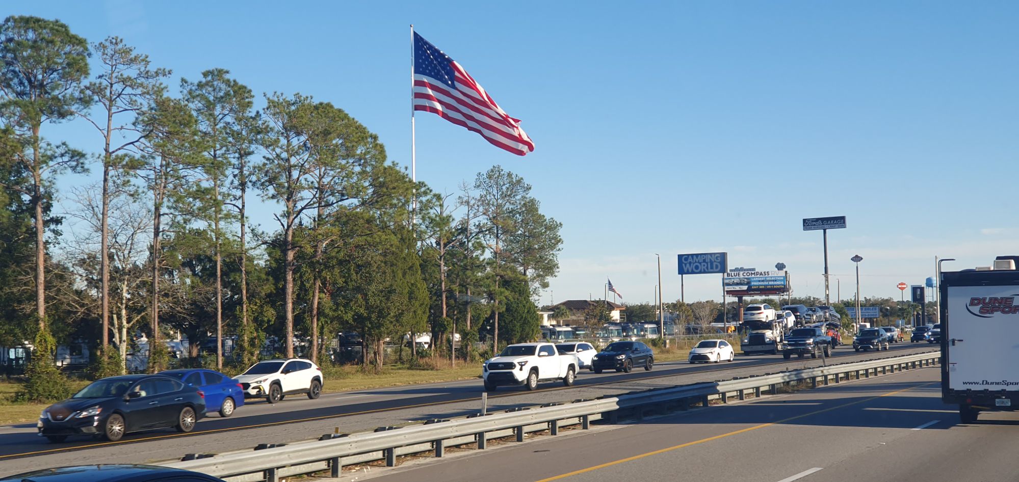 190616 km : Nous quittons Savannah pour nous rapprocher de Daytona (Floride). Aujourd’hui, ce sera de la route, de la route… en faisant très attention aux branches en sortant de Savannah 😉