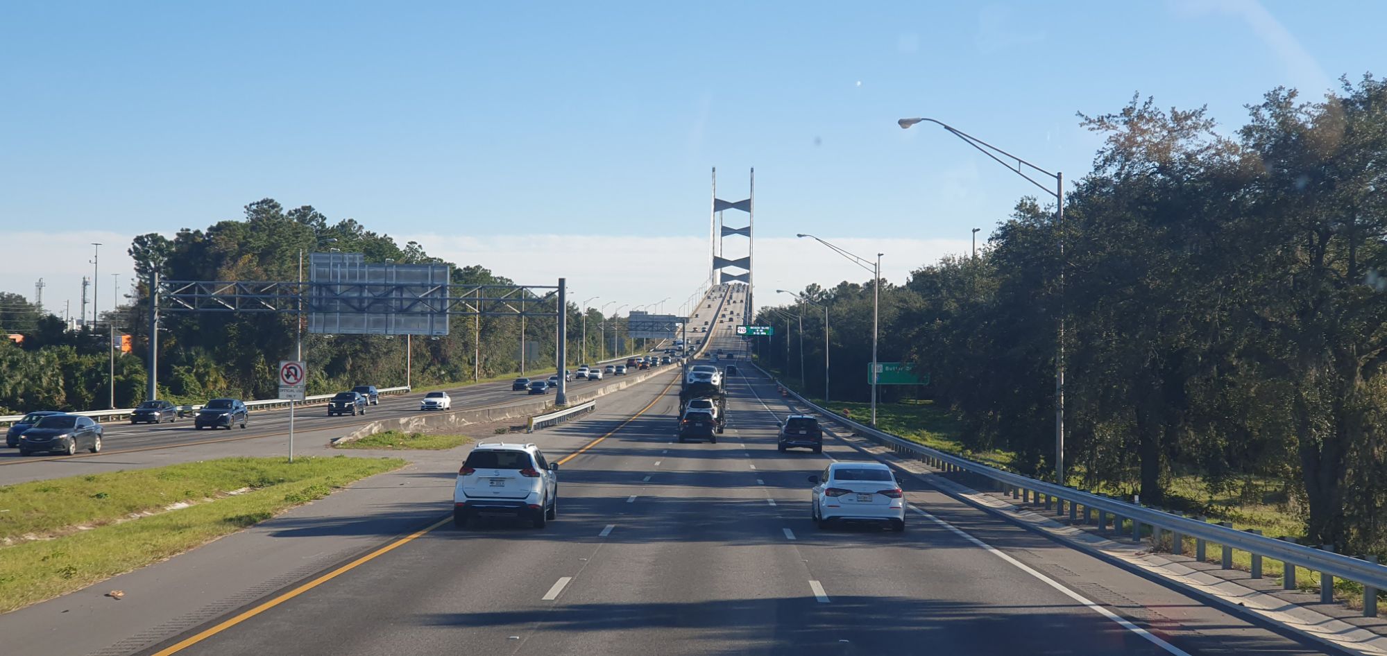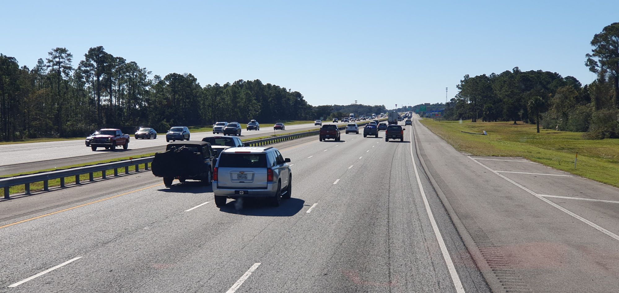 Circulation bien présente, météo au top, et bandes d’arrêt d’urgence très larges à gauche et à droite de la chaussée 3 voies. Top 👍