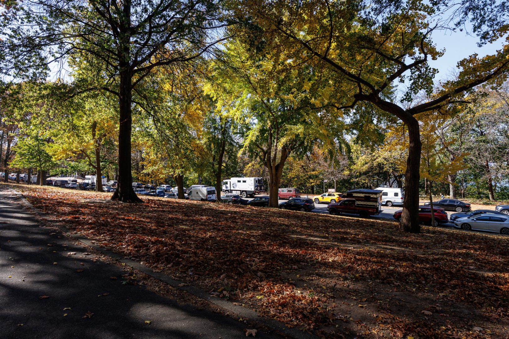 188036 km : Ce matin, nous quittons notre bivouac aux belles couleurs d’automne pour nous rendre au pont de Brooklyn. Il fait beau et chaud ! Le temps est vraiment incroyable… Il y a 2 jours il faisait 14 degrés et aujourd’hui… 26 degrés, un 1er novembre tout de même !