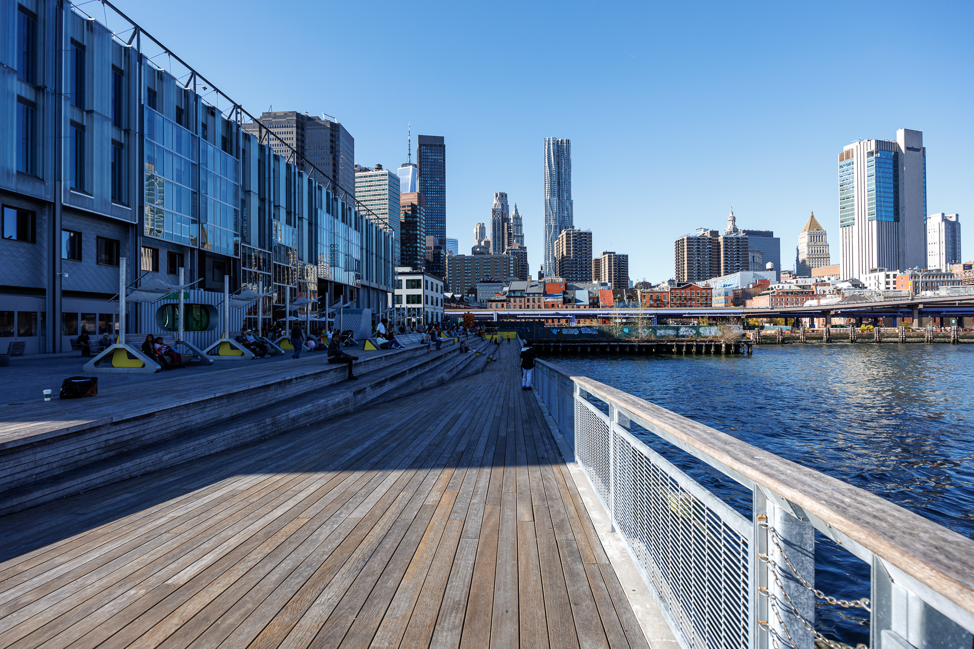Actuellement, Le Pier 17 accueille quelques restaurants, des boutiques de vente au détail et une salle de concert sur le toit. C’est un très bel endroit ! Depuis la promenade du front de mer, on a une belle vue sur le pont de Brooklyn, le pont de Manhattan et les gratte-ciel de New York.