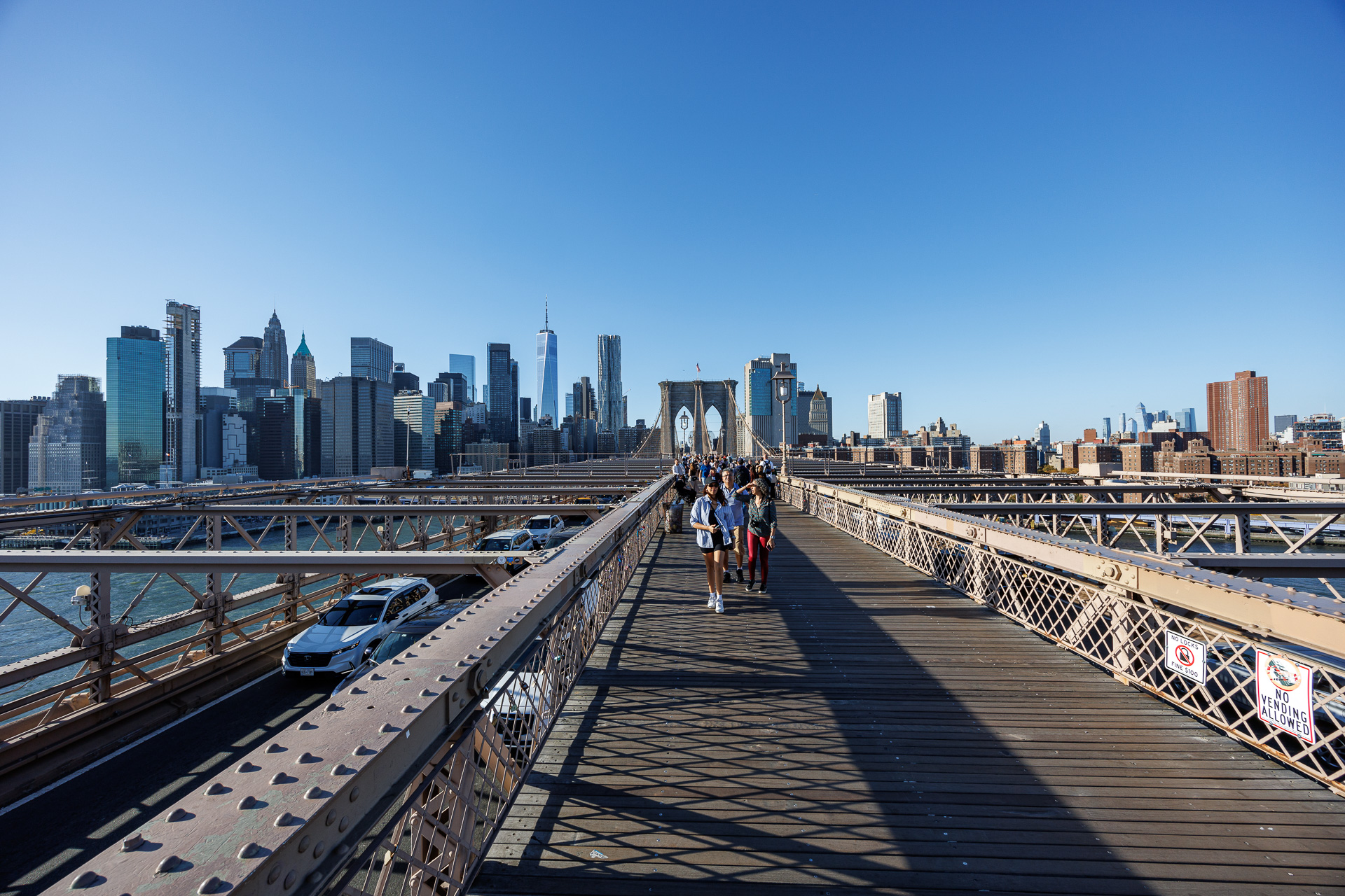 Nous voilà sur le pont de Brooklyn ! Il fait beau, c’est vendredi, congés scolaires en France… Il y a beaucoup de monde et donc beaucoup de français 🇨🇵 ! On ne sent pas du tout dépaysés !